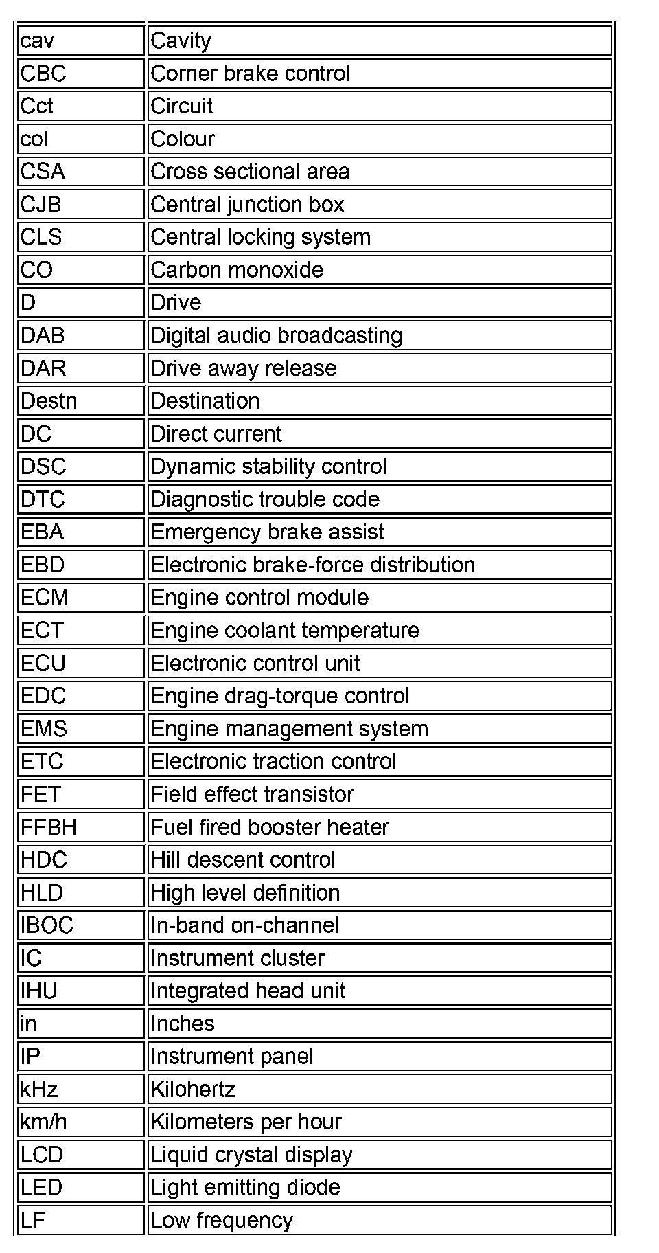 5. Cct: Identifies the model or option which uses the wire. 'ALL' means applicable to all models in the range fitted with the feature or system in question. In instances where different models, features or systems require different colour wires to be fitted in a cavity, each instance of the cavity is included in the pin-out table.