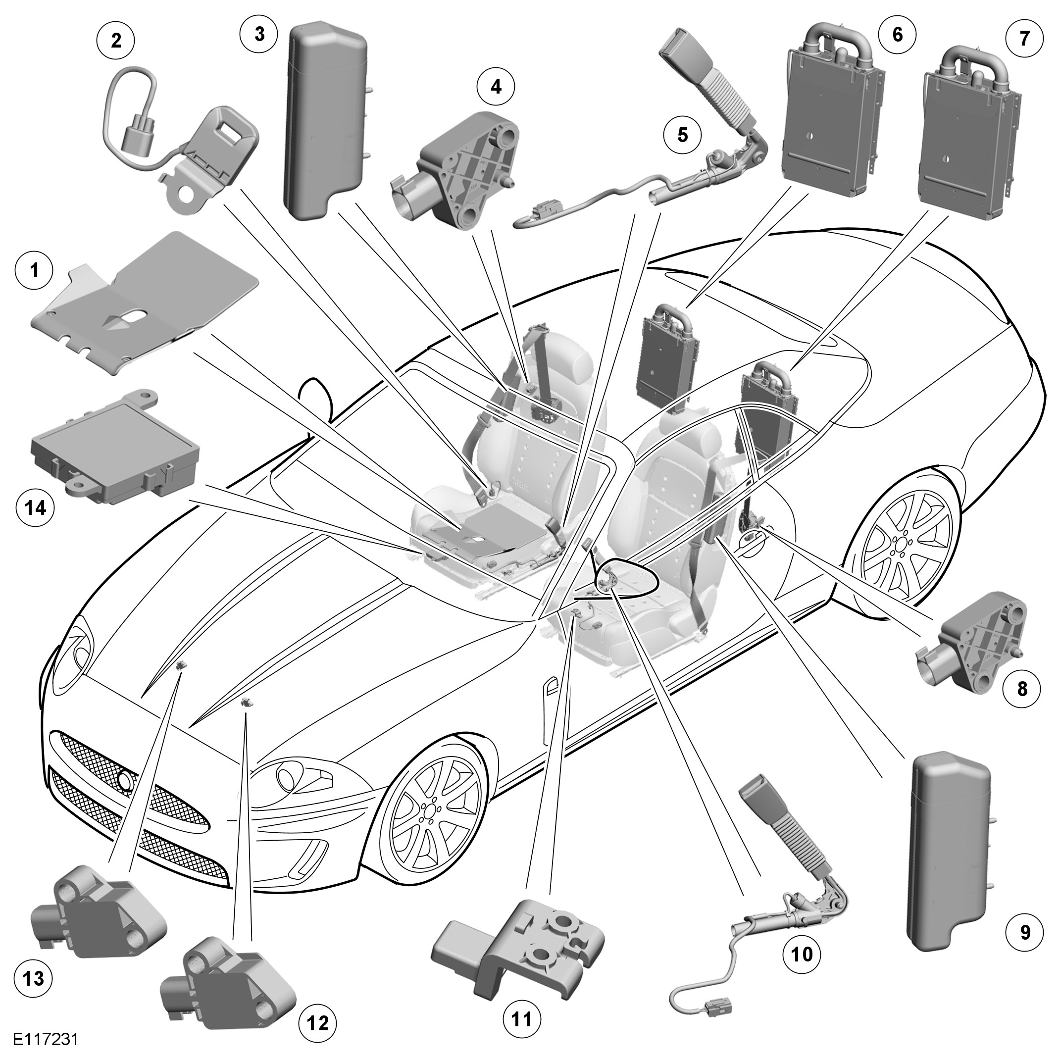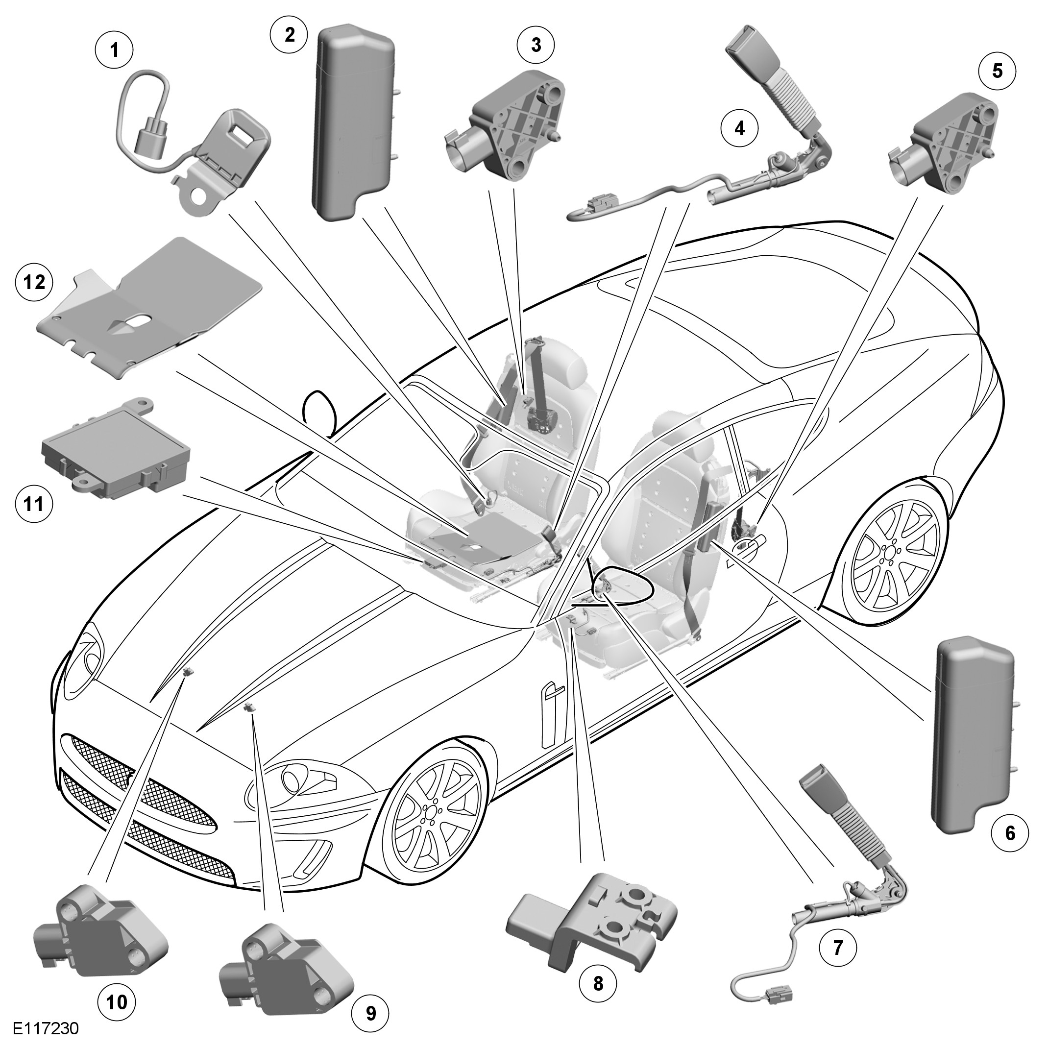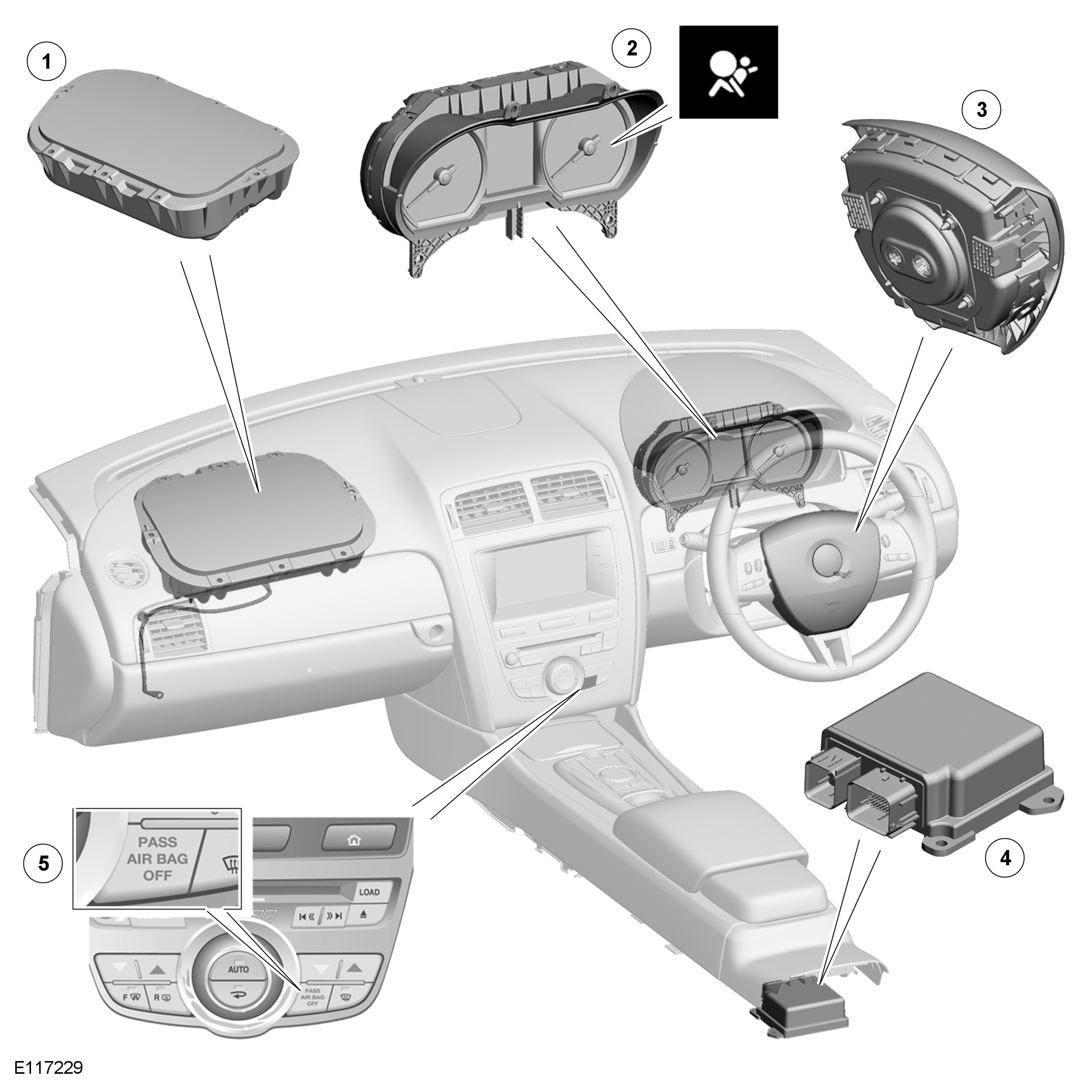 When the ignition is switched on the RCM (restraints control module) performs a self test and then performs cyclical monitoring of the system. If a fault is detected the RCM (restraints control module) stores a related fault code and illuminates the air bag warning indicator. The faults can be retrieved by a Jaguar approved diagnostic system over the high speed CAN (controller area network) bus. If a fault that could cause a false fire signal is detected, the RCM (restraints control module) disables the respective firing circuit, and keeps it disabled during a crash event