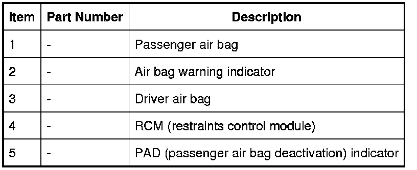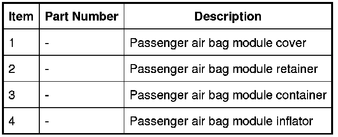 The passenger air bag module is controlled by the RCM (restraints control module), which chooses between single or dual stage deployment depending on the occupant status and the crash severity. It consists of a two stage inflator with two air bag electrical connectors to accommodate the two stage inflation.