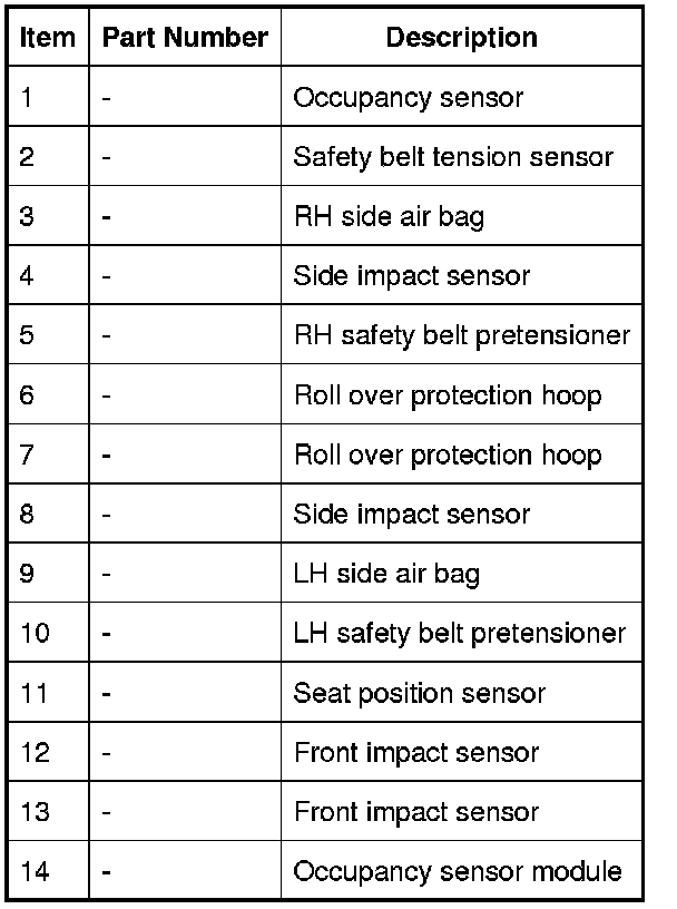 - An occupancy sensor, installed under the cushion of the front passenger seat