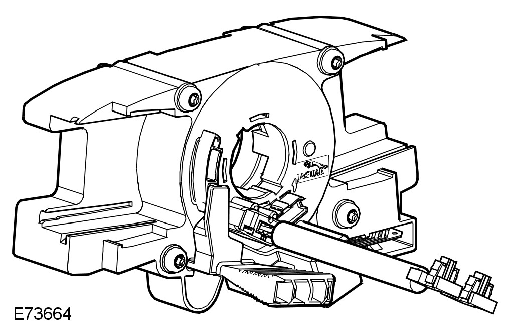 The clockspring consists of a plastic cassette which incorporates an outer cover fixed to the steering column and an inner rotor which turns with the steering wheel. Four securing lugs attach the cover to the multifunction switch on the steering column. The rotor is keyed to the steering wheel by a drive peg. A lug on the underside of the rotor operates the self-canceling feature of the turn signal indicator switch. A ribbon lead, threaded on rollers in the rotor, links two connectors on the cover to two connectors on the rotor. Link leads for the driver air bag are installed in one of the connectors on the rotor.