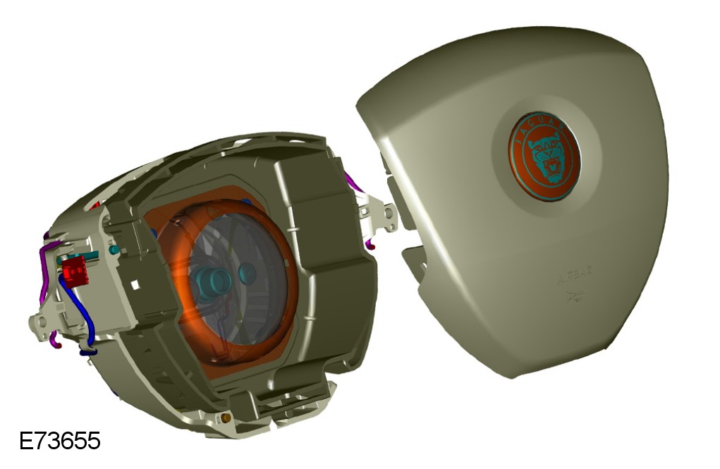 The driver air bag module is controlled by the RCM (restraints control module), which chooses between single or dual stage deployment depending on the occupant position and the crash severity. To reduce the risk of an air bag module induced injury to a driver that is positioned close to the steering wheel, the air bag module deploys radially. It has a non-azide propellant that reduces particulates and effluents. It consists of a two stage inflator with separate chambers for the two inflation stages, each being independently activated by the RCM (restraints control module). It has two electrical connectors that are color coded and mechanically keyed to the respective connector on the inflator.
