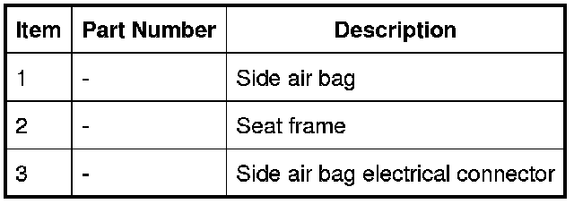 The side air bag module is mounted in the outboard bolster of each front seat and uses compressed gas to inflate. It provides protection for the thorax (the part of the trunk between the neck and the abdomen) and the head. In an air bag deployment situation, it deploys through the stitch seam in the side bolster. To ensure the air bag always emerges at the same point, a chute is attached to the inside of the trim cover and wrapped around the air bag module.