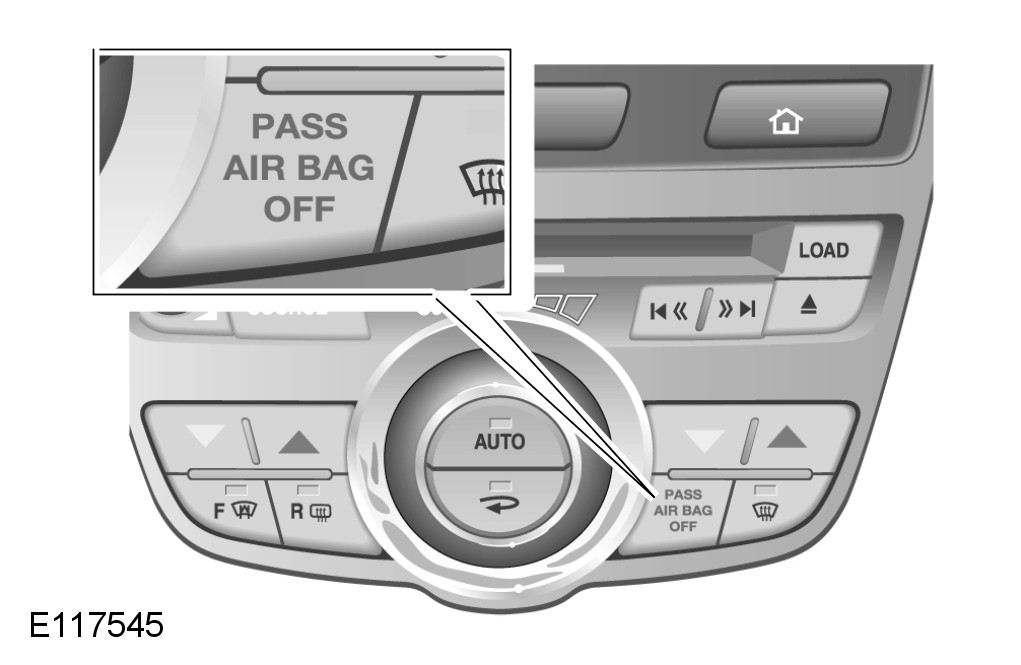 - A PAD (passenger air bag deactivation) indicator, on the integrated control panel.