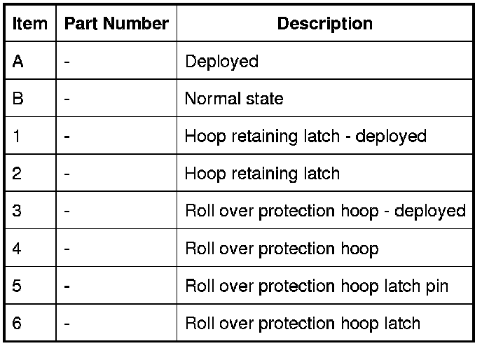 The roll over protection system comprises two spring loaded hoops located behind the rear seat. The hoops incorporate a pin to break the rear window glass as the hoop is released. The hoops are released by a pyrotechnic device when the RCM (restraints control module) detects a roll over condition.