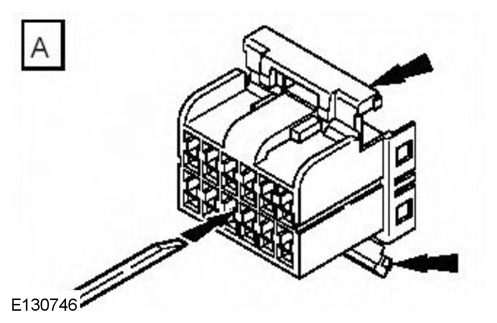 - Remove the faulty terminal from the electrical connector using the extractor tool and correct tip. Make sure that any anti-backout device is released before trying to remove the terminal.