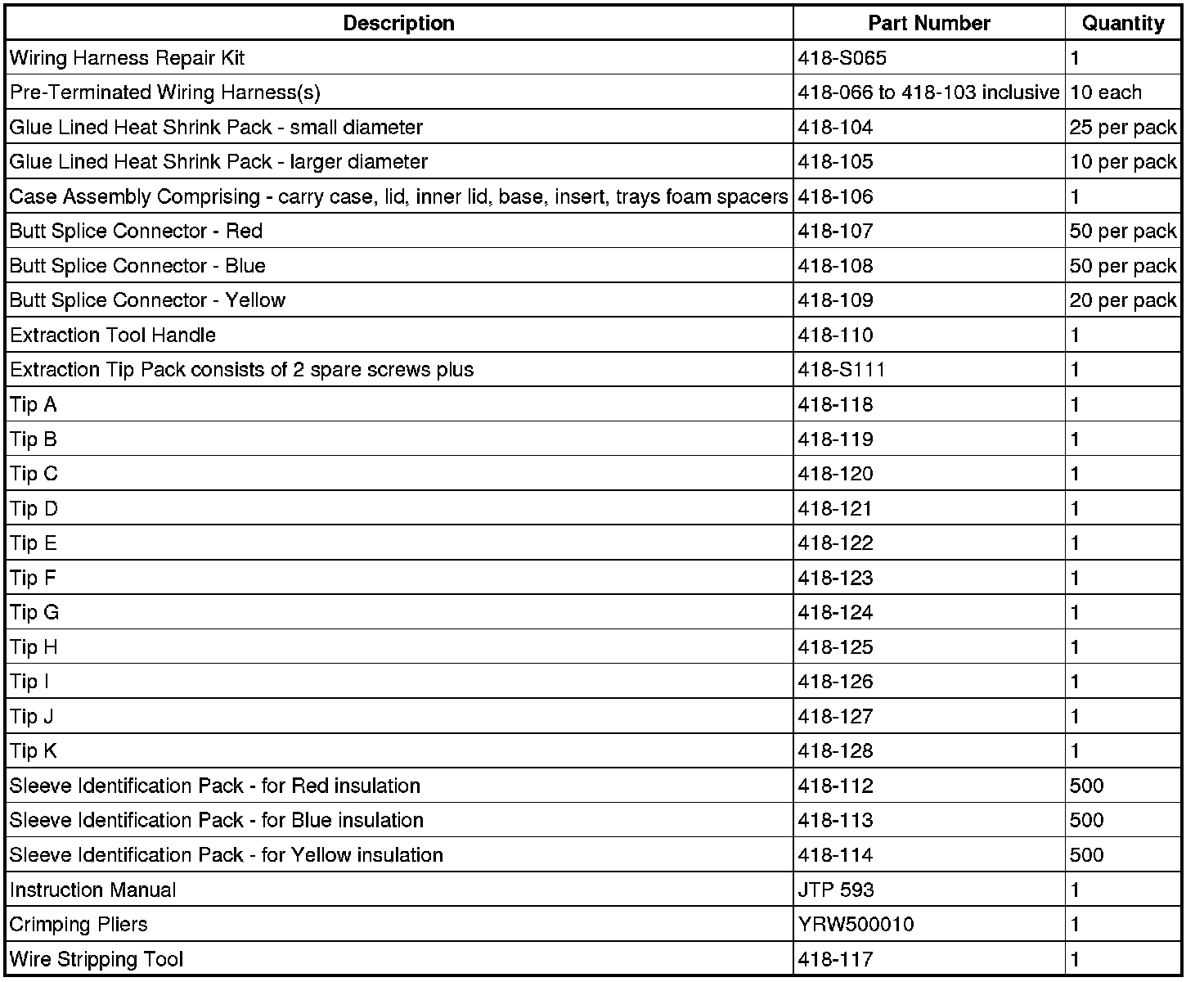 The pre-insulated diamond grip range of electrical connector terminals and in-line, butt splice connectors contained within the wiring harness repair kit are the only acceptable product for the repairs of wiring harnesses. The butt connectors not only grip the wire but also the insulation, making a very secure joint.