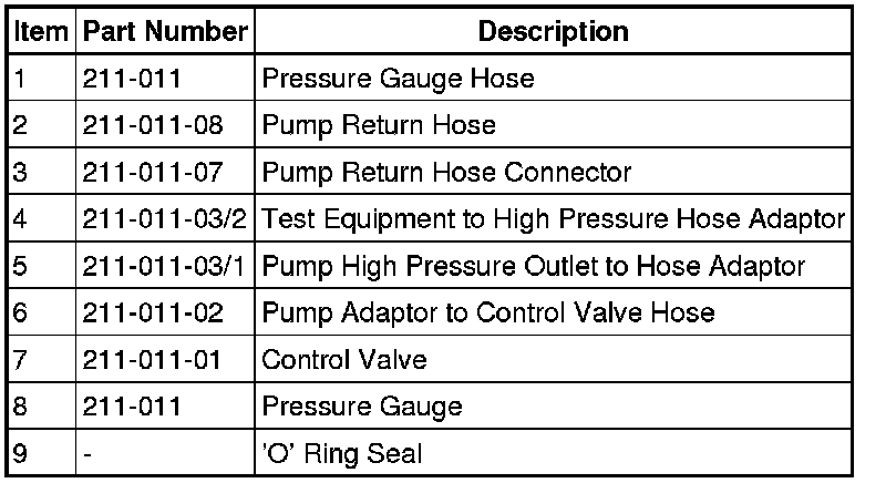 With the control valve (7) CLOSED the power steering pump maximum output pressure can be checked.