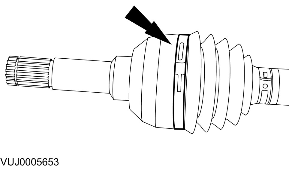 - Remove and discard the CV joint boot inner retaining clamp.
