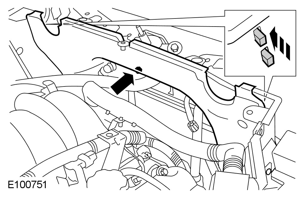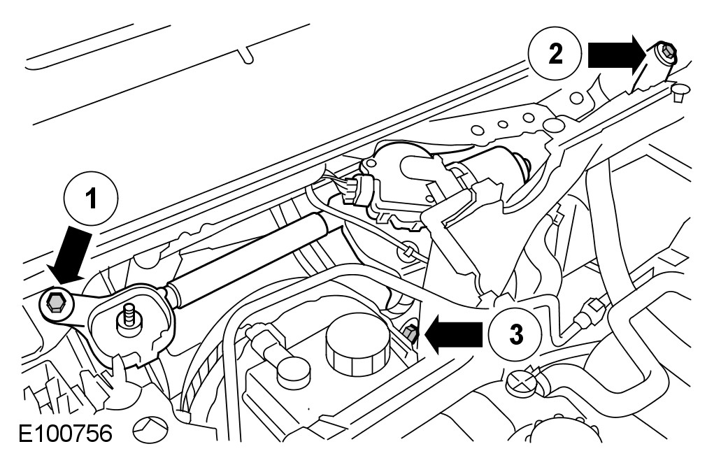 CAUTION: Care must be taken whilst removing the engine compartment bolts. Failure to follow this instruction may result in damage to the A/C pipes.