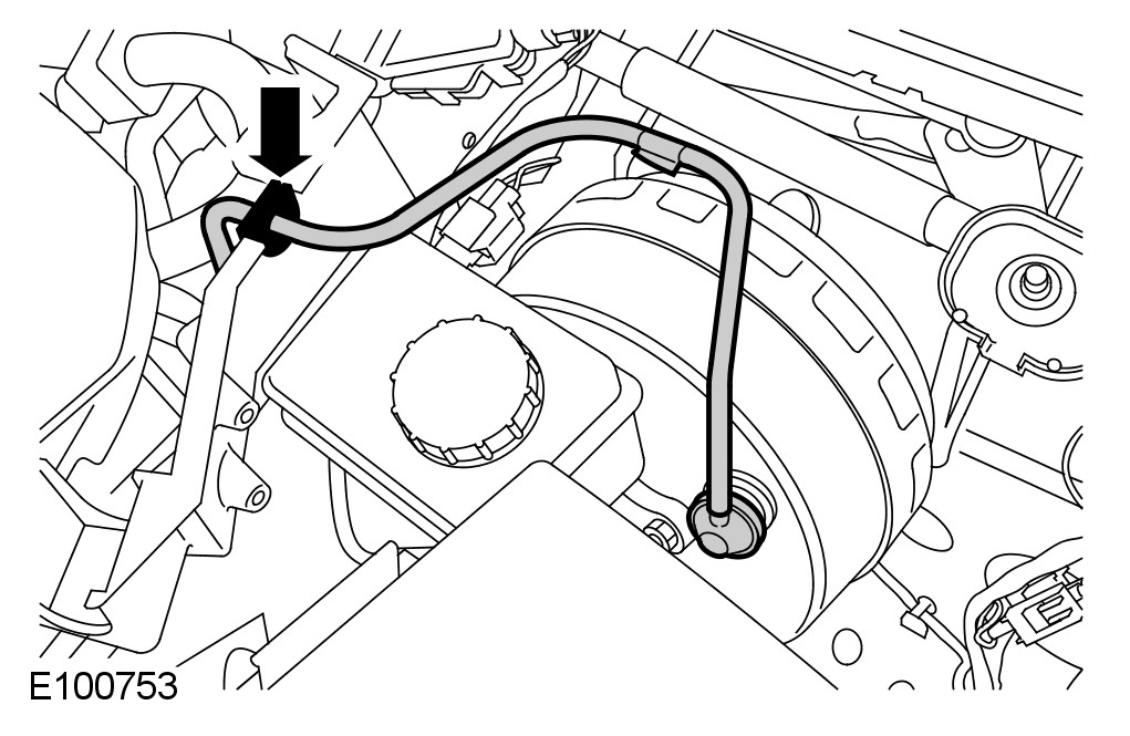 6 Position the brake booster vacuum hose to one side.