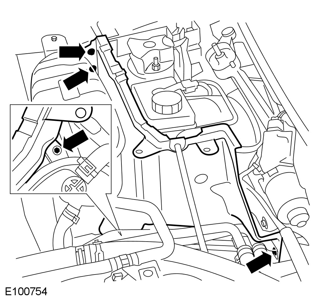 - Remove the coolant expansion tank mounting bracket bolt.