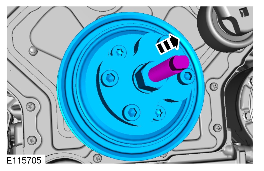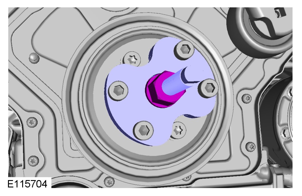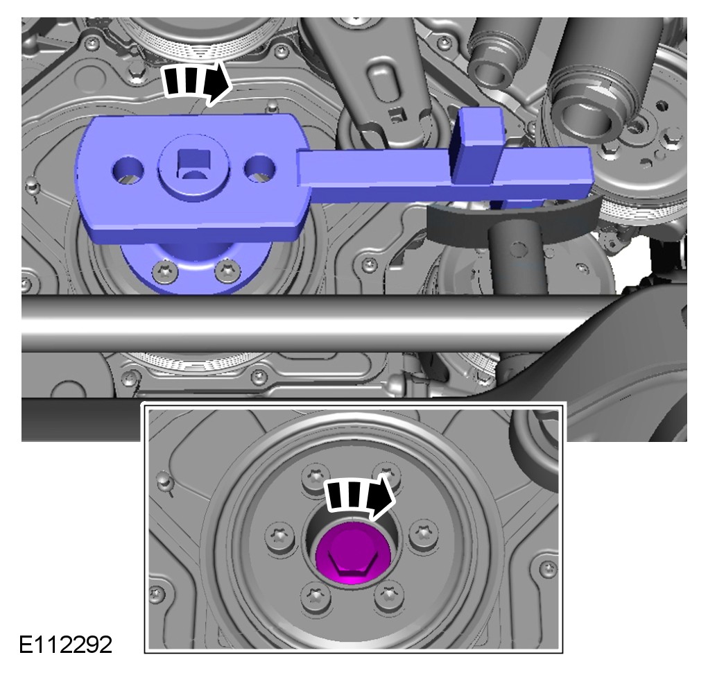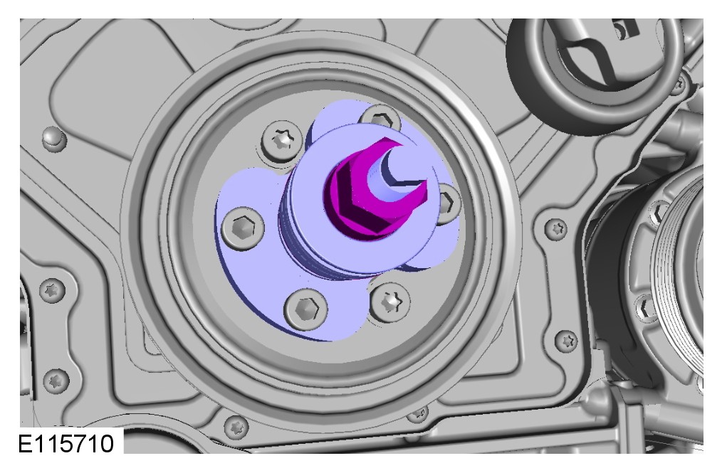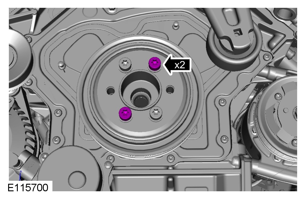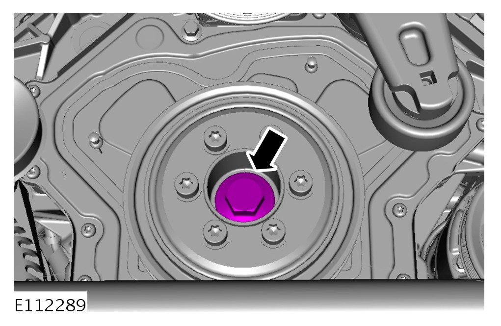 CAUTION: Before removing the crankshaft pulley bolt, note the numbers on the bolt head. If the bolt head shows 10.9, the bolt must be removed counter clockwise. If the bolt head shows 12.9, the bolt must be removed clockwise. Failure to follow this instruction may result in damage to the crankshaft.