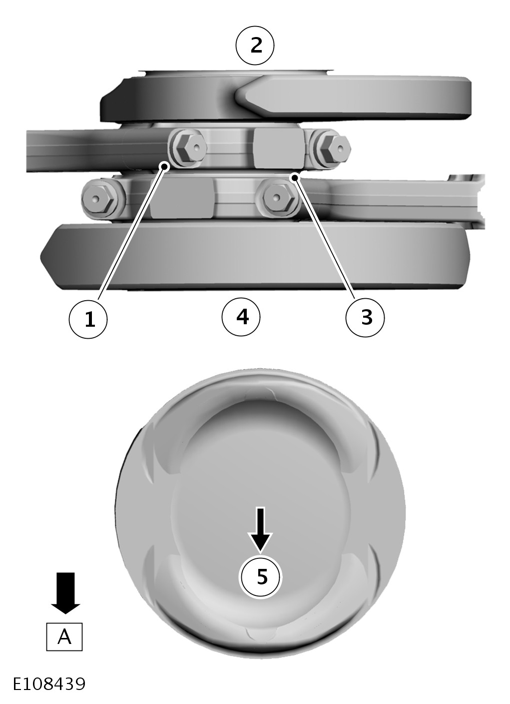 - Bank A - The arrow on the piston crown must face the front of the engine and the cap and connecting rod alignment marks must face the rear of the engine.