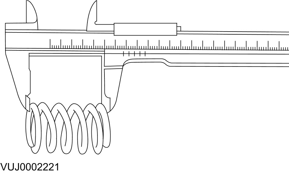 Using a vernier gauge, measure the free length of each valve spring. Verify the length is within specification.