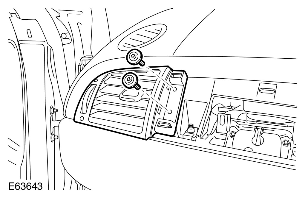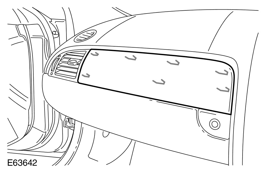 1 Remove the instrument panel passenger side reinforcement trim panel.