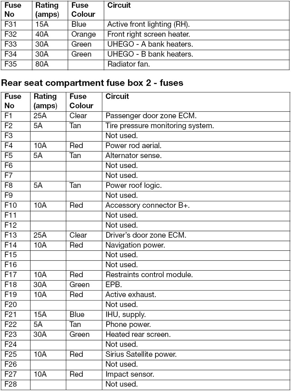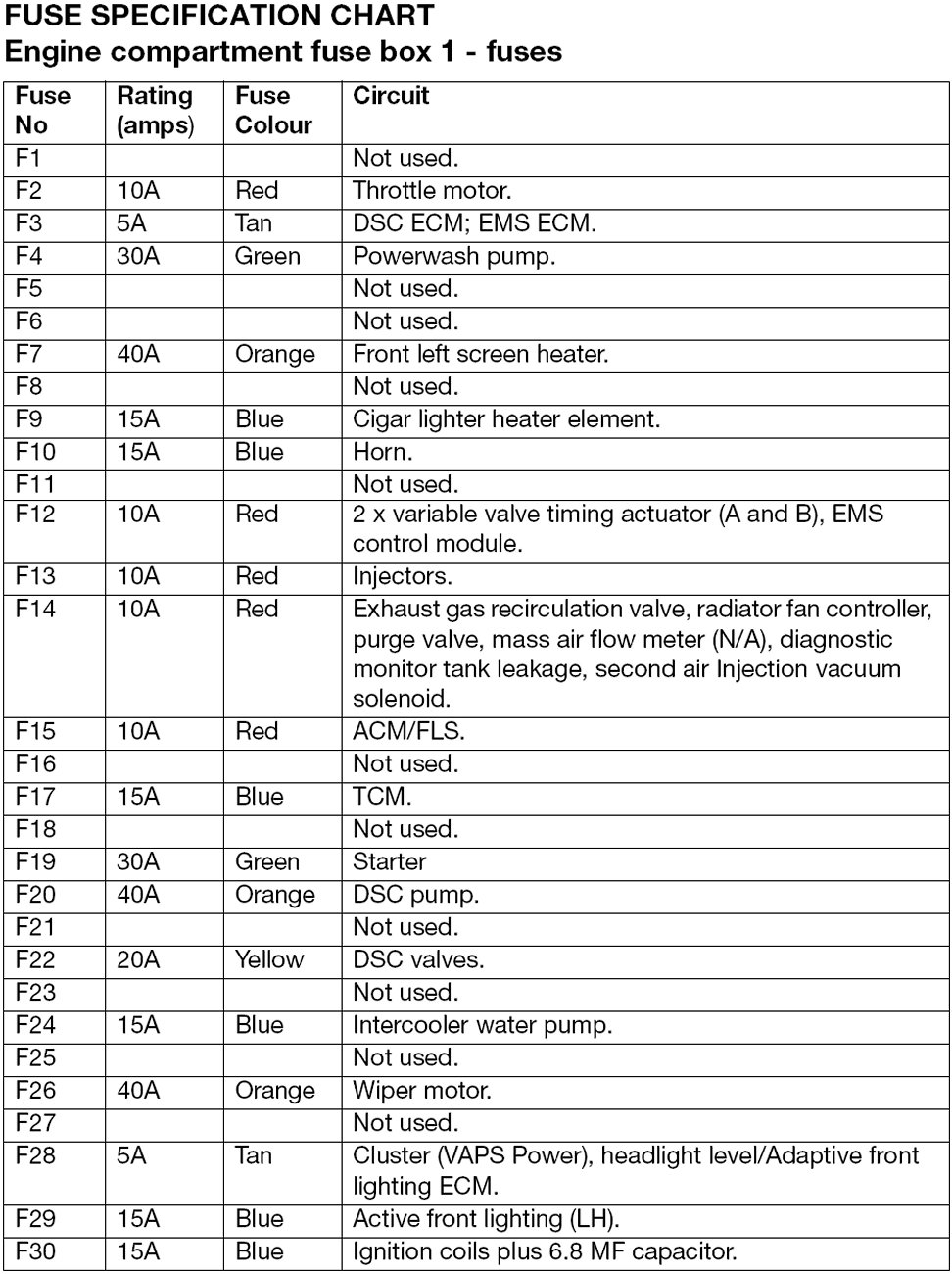 Fuse Box Fuse Assignments
