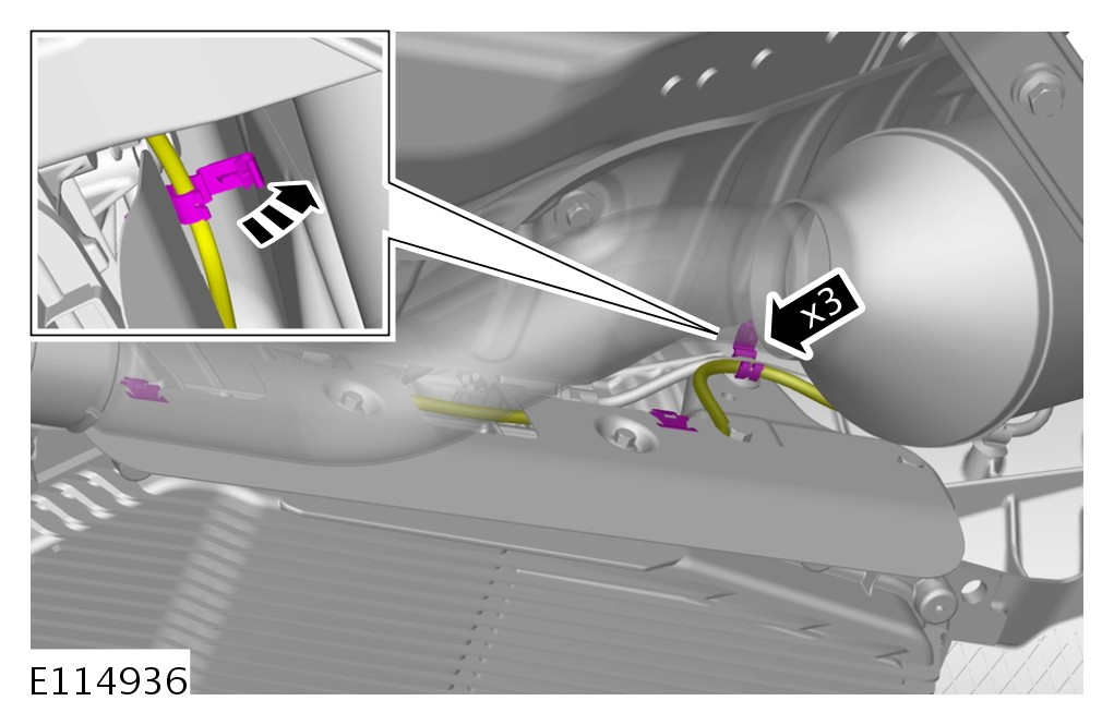 CAUTION: Make sure the catalyst monitor sensor wiring harness is not twisted more than 180 degrees and is not in contact with either the exhaust or driveshaft.
