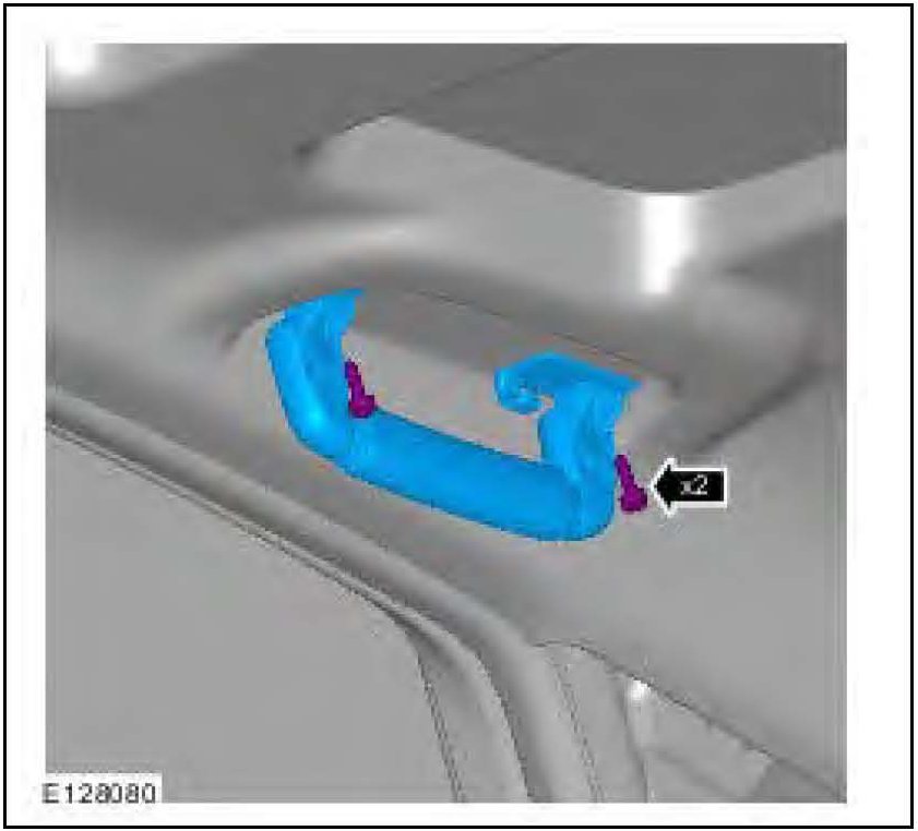 ^ Loosen both Torx bolts from the roof mounting bracket, but do not remove them fully. Leave them threaded to the plastic spacer so the grab handle remains with the headliner.