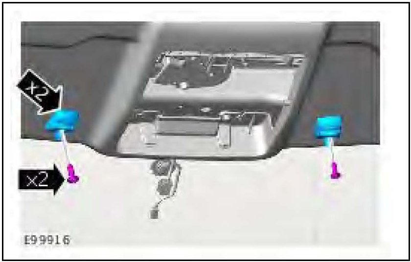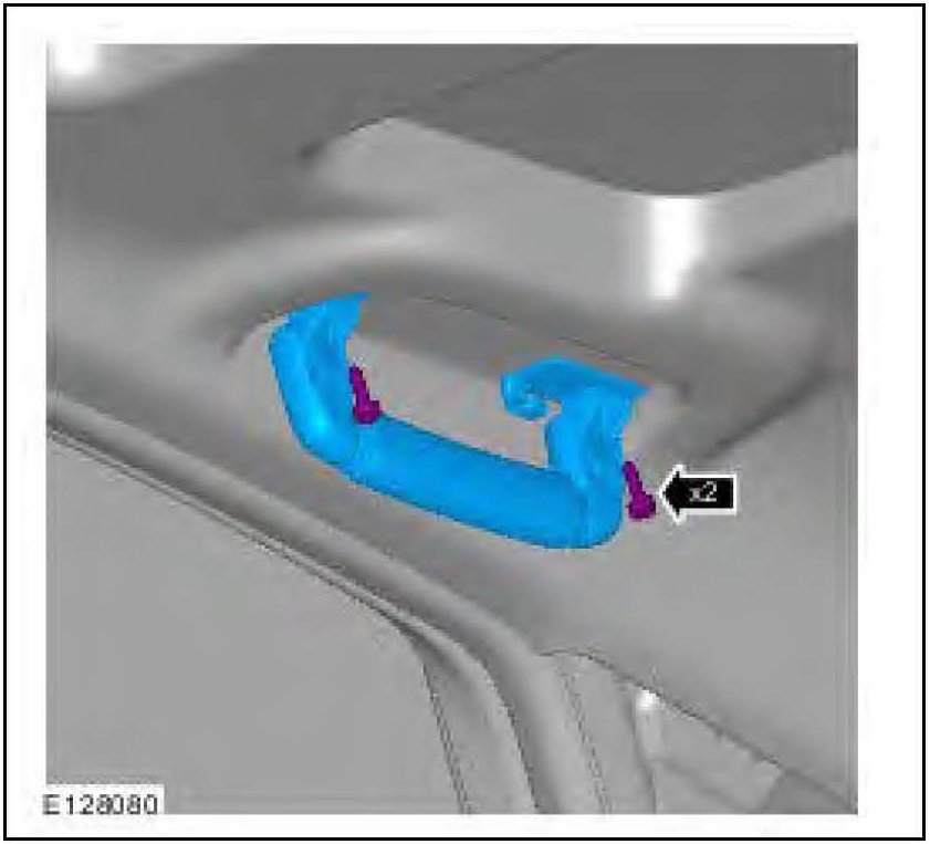 ^ Loosen both Torx bolts from the roof mounting bracket, but do not remove them fully. Leave them threaded to the plastic spacer so the grab handle remains with the headliner.