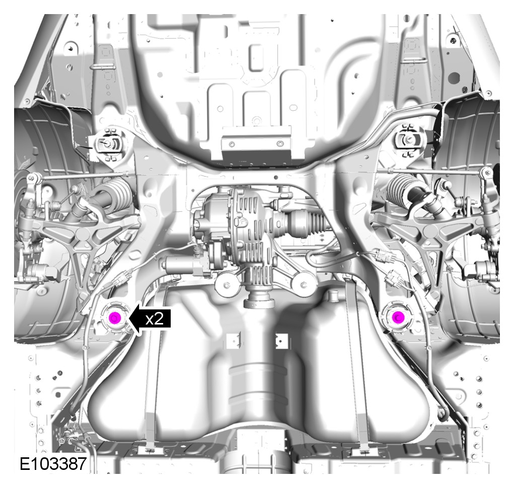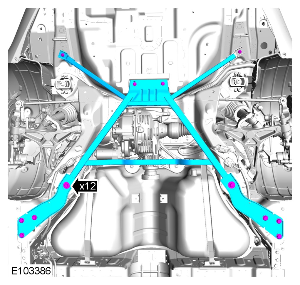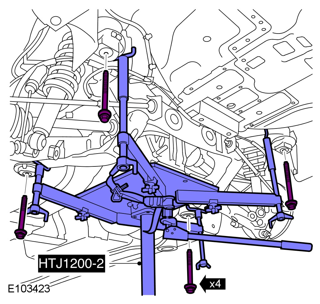 WARNING: Install the M12 subframe bolts prior to removing axle support.