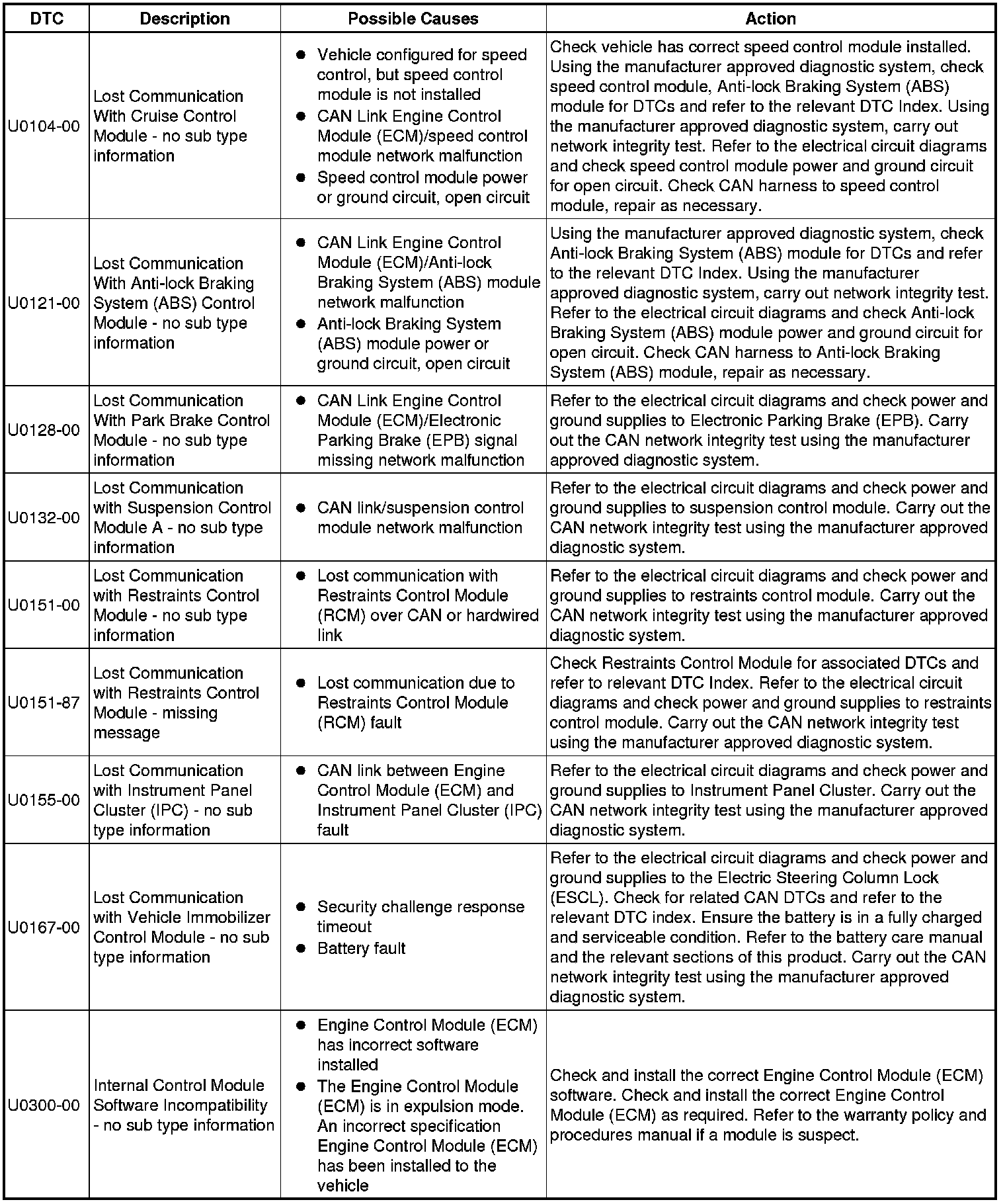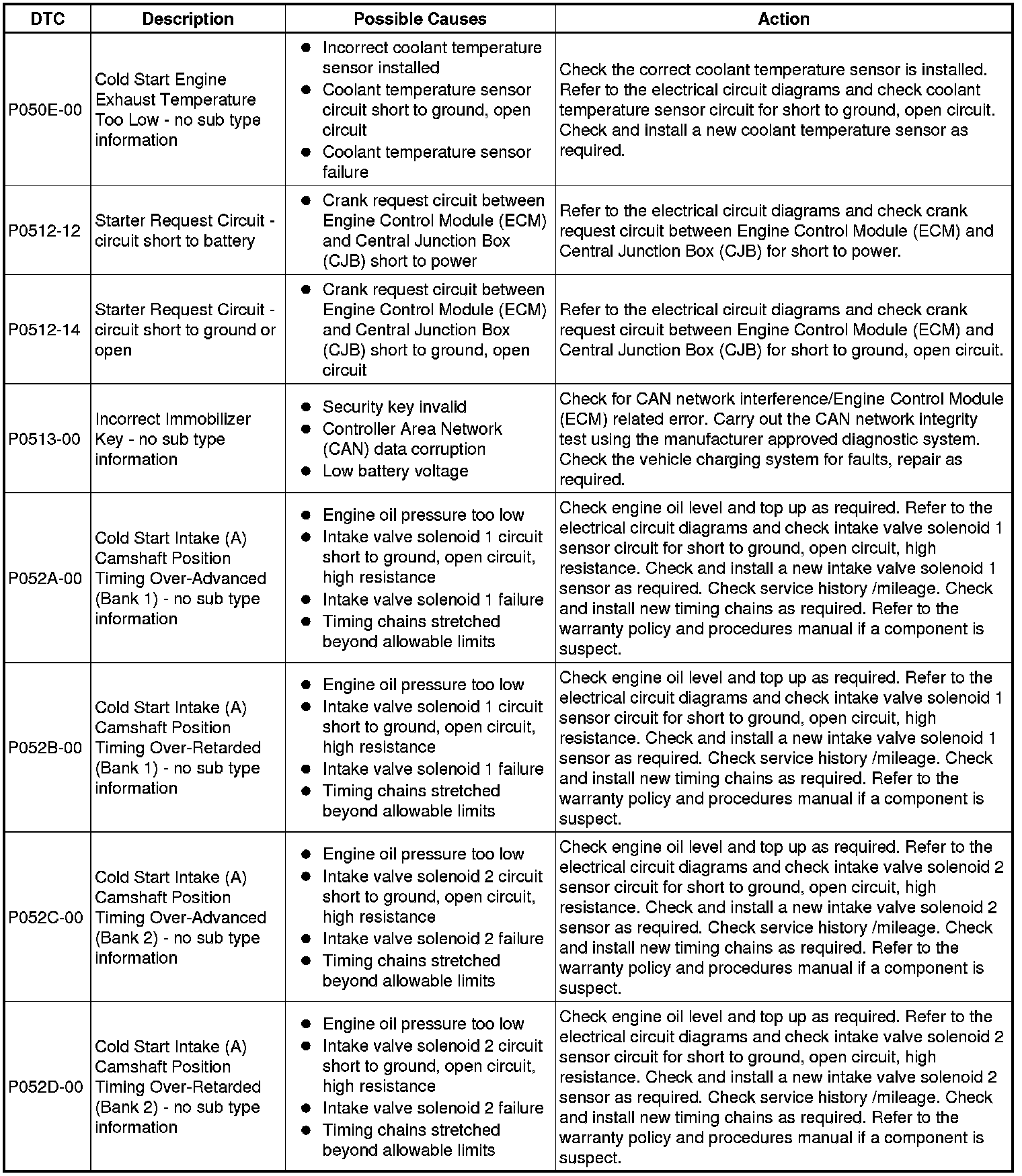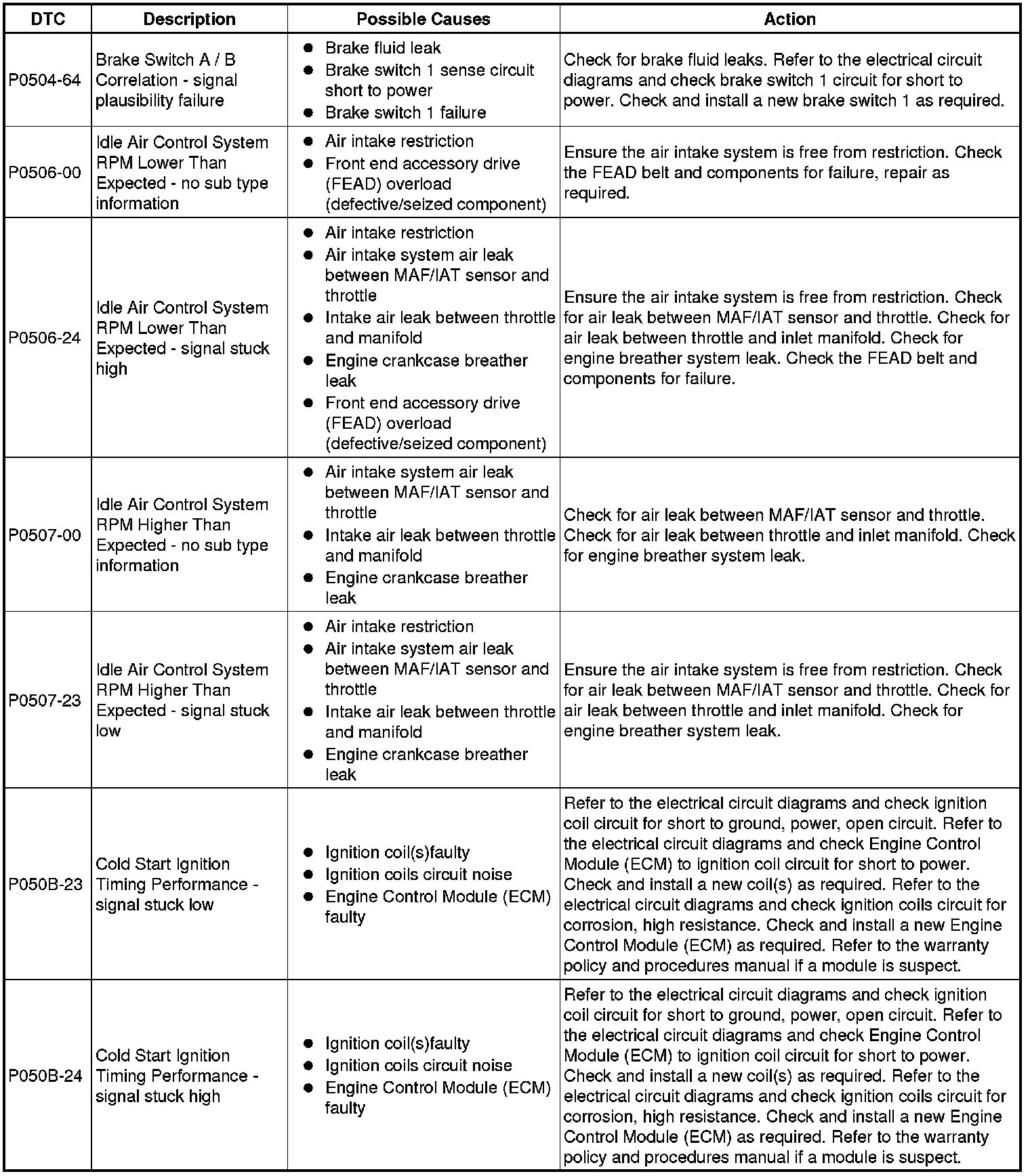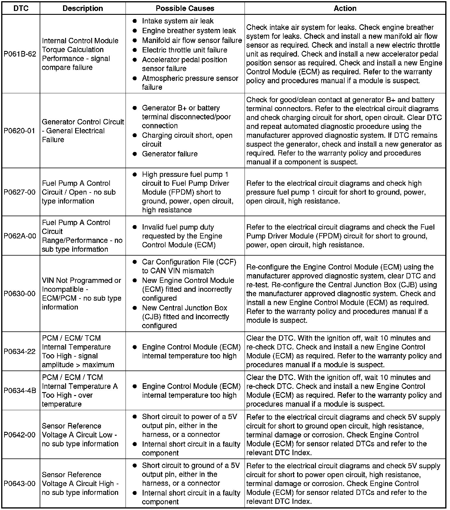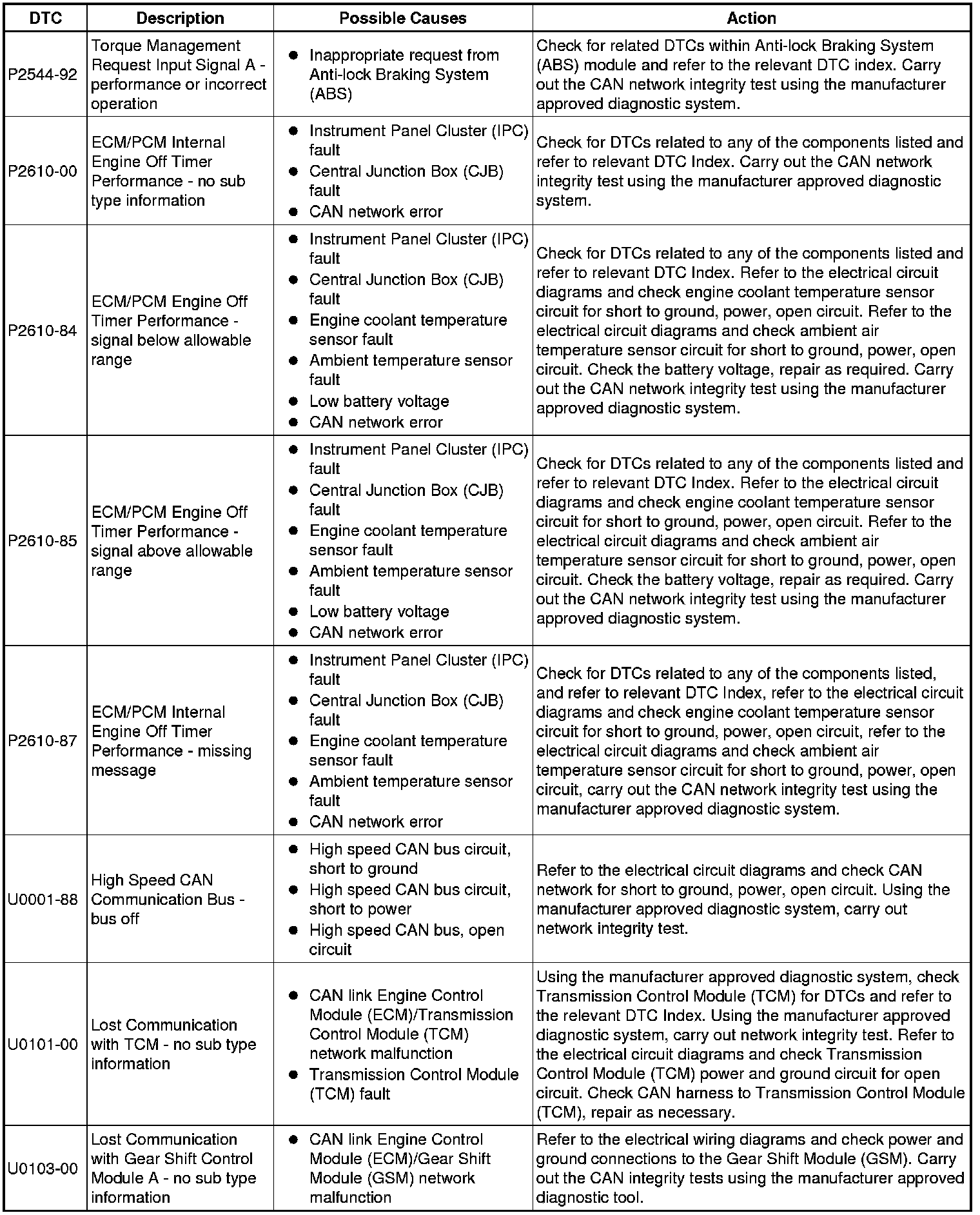 Generic scan tools may not read the codes listed, or may read only five digit codes. Match the five digits from the scan tool to the first five digits of the seven digit code listed to identify the fault (the last two digits give additional information read by the manufacturer-approved diagnostic system).