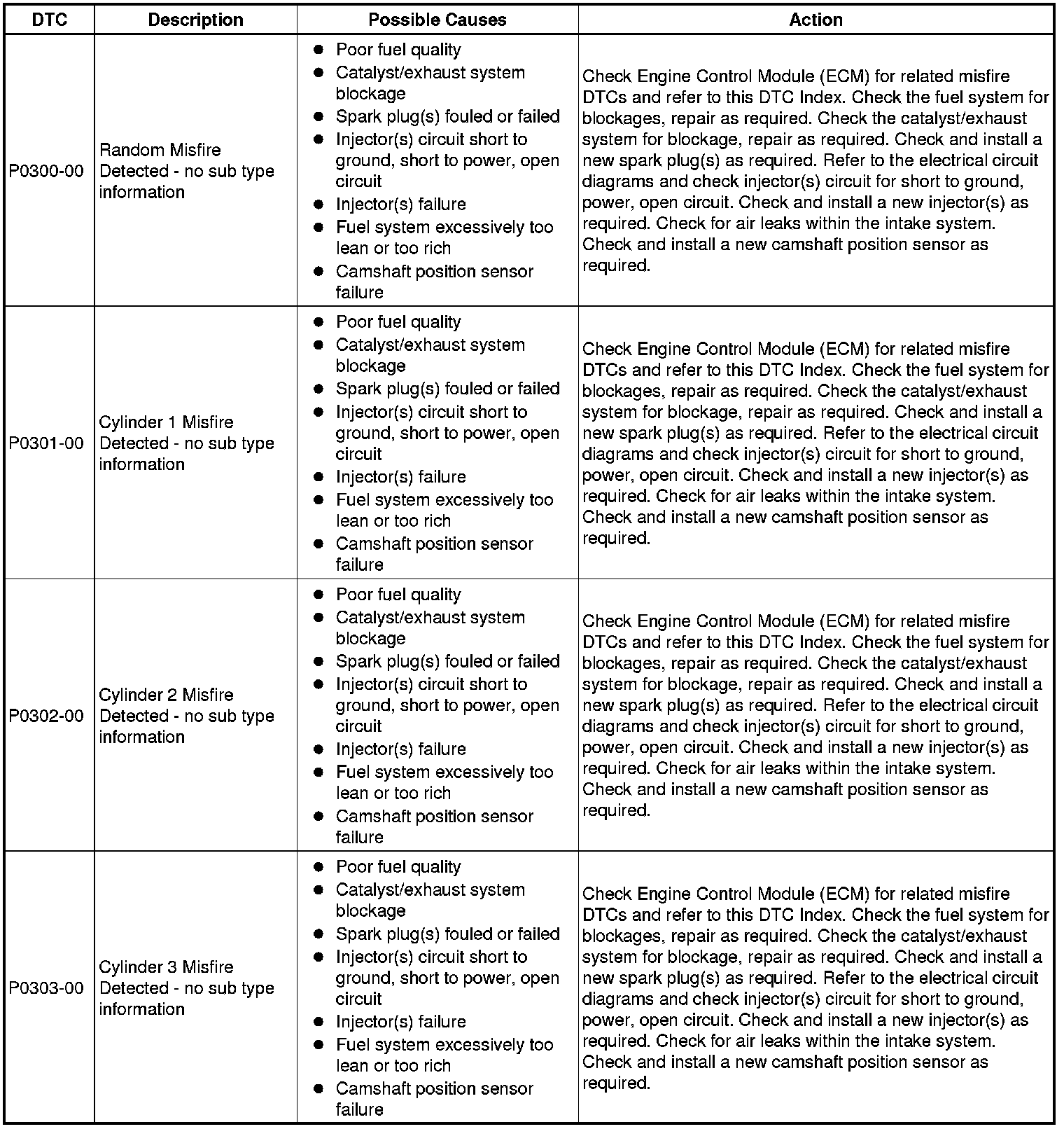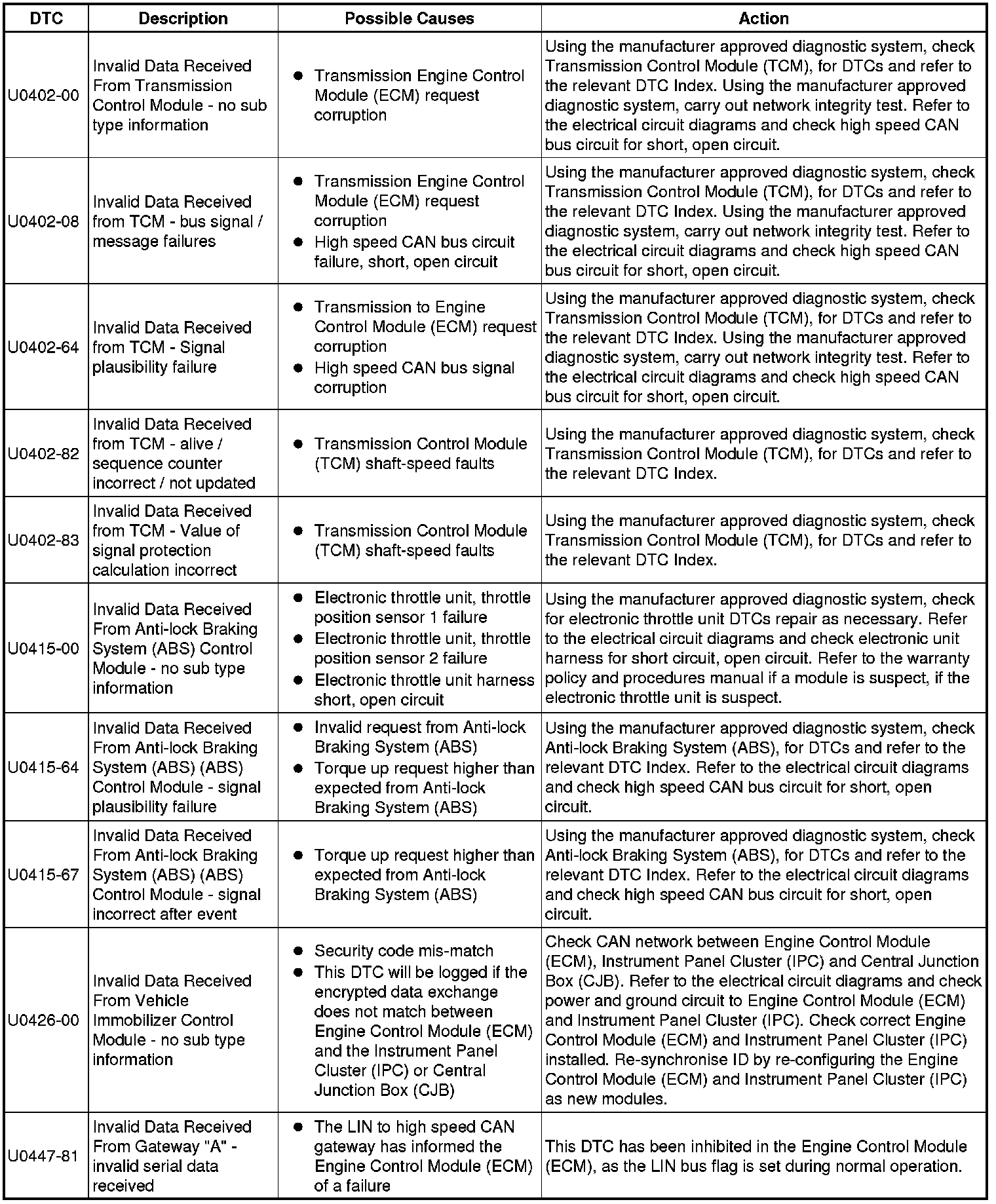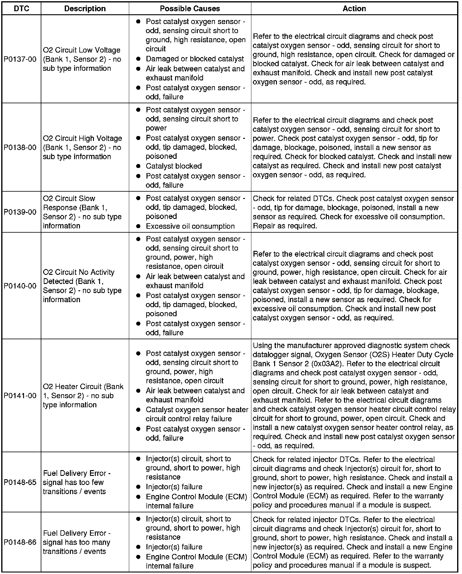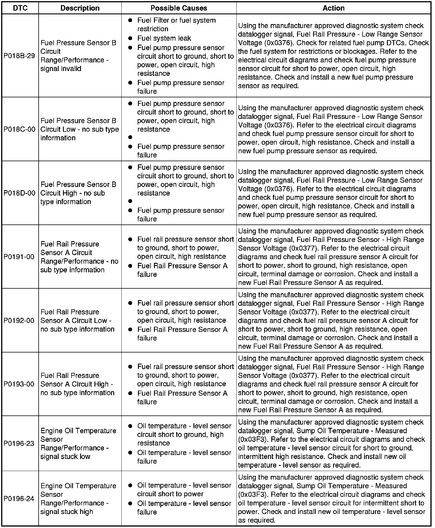 Generic scan tools may not read the codes listed, or may read only five digit codes. Match the five digits from the scan tool to the first five digits of the seven digit code listed to identify the fault (the last two digits give additional information read by the manufacturer-approved diagnostic system).
