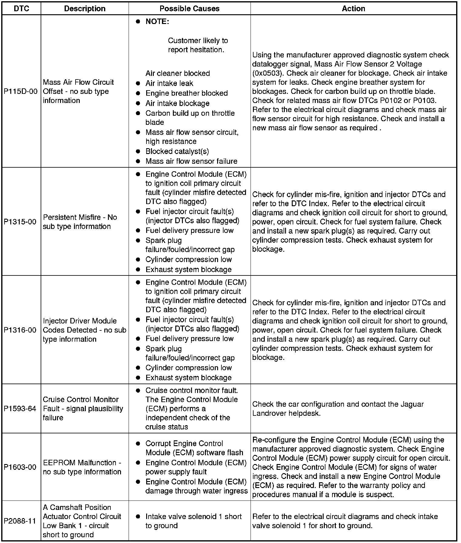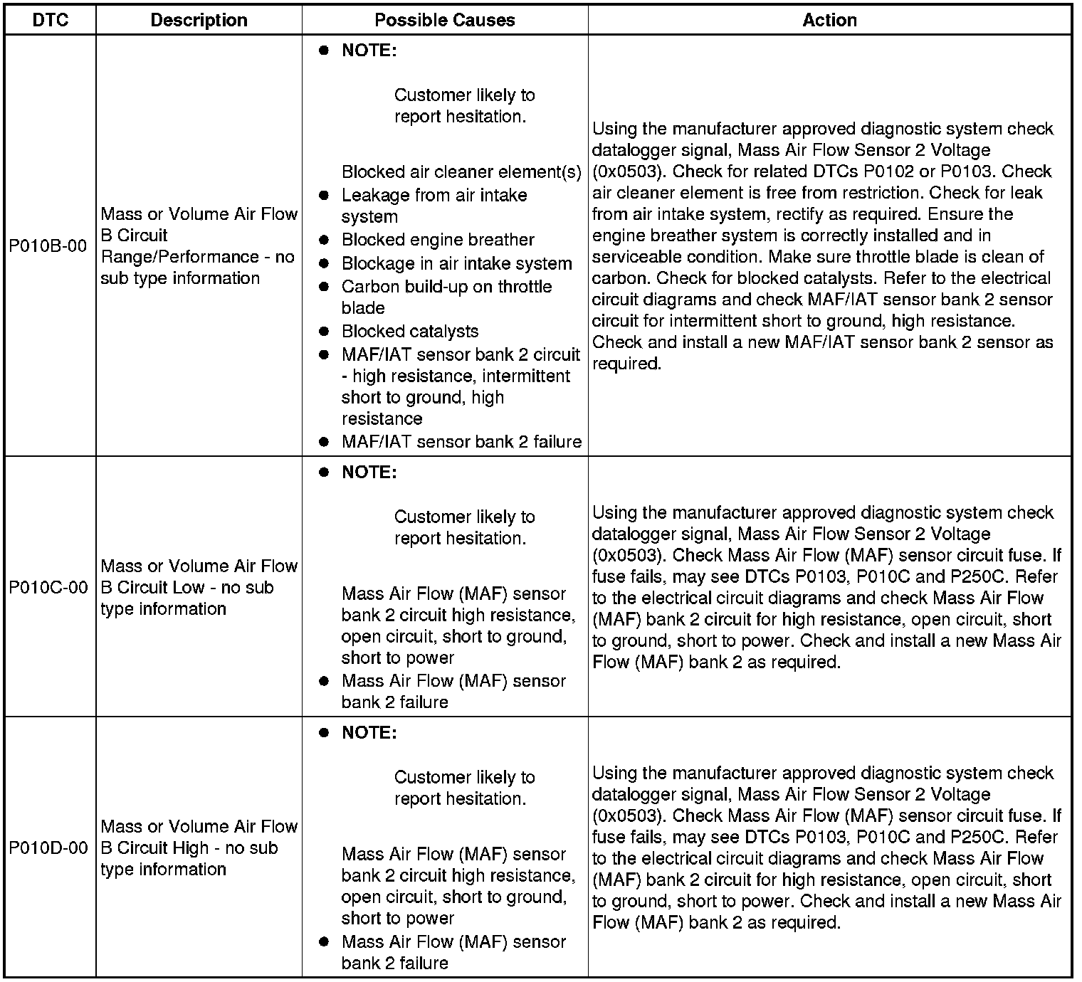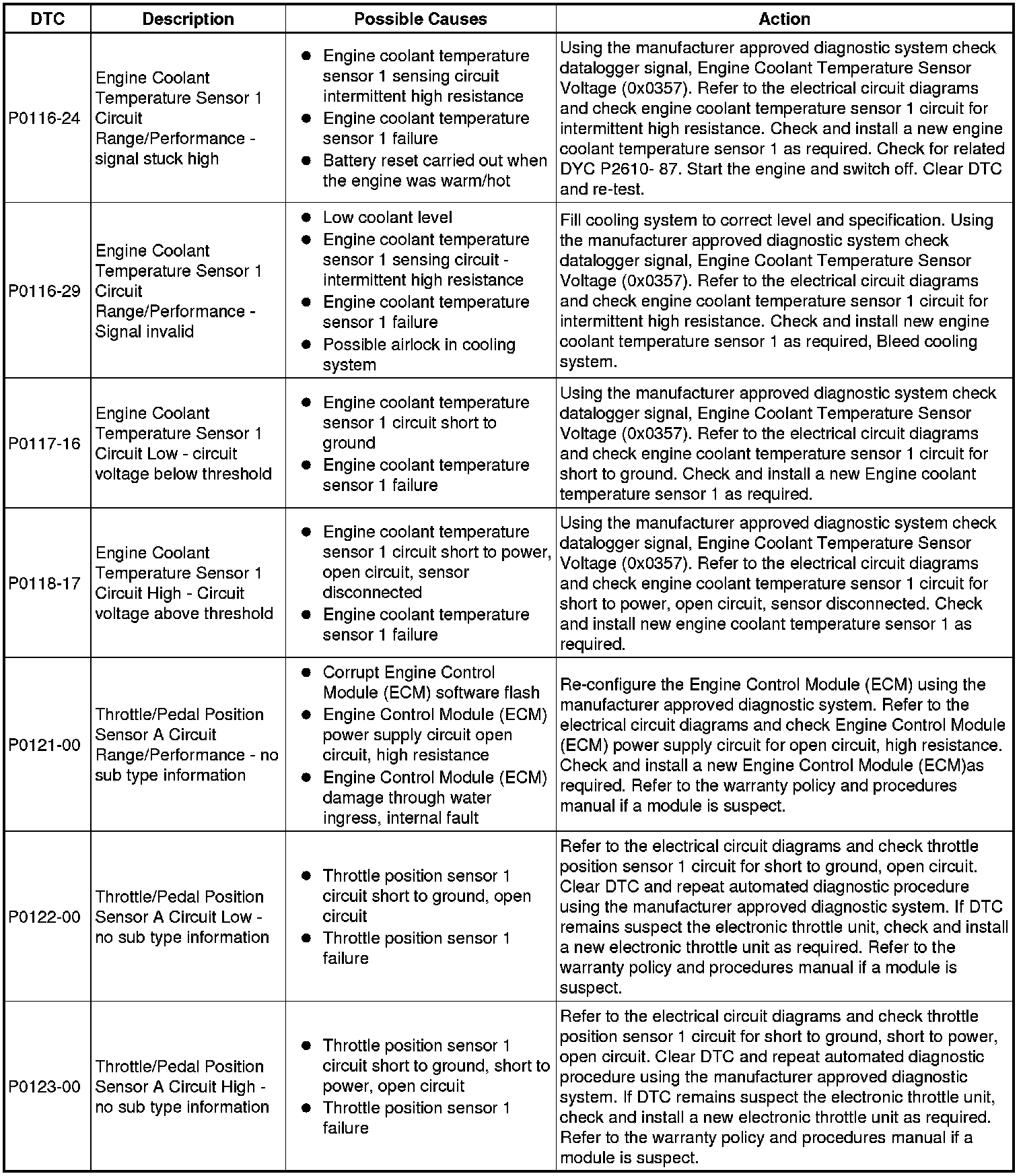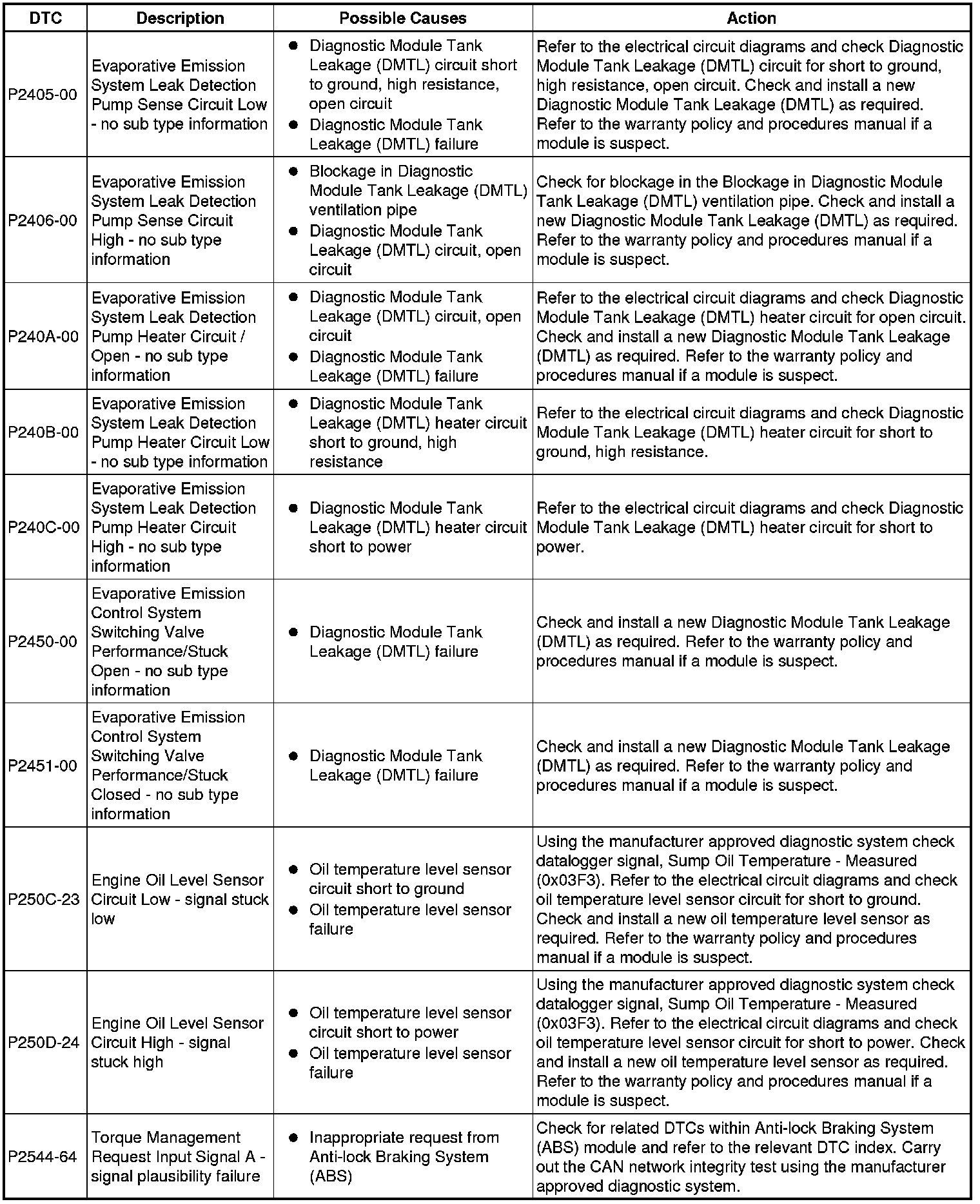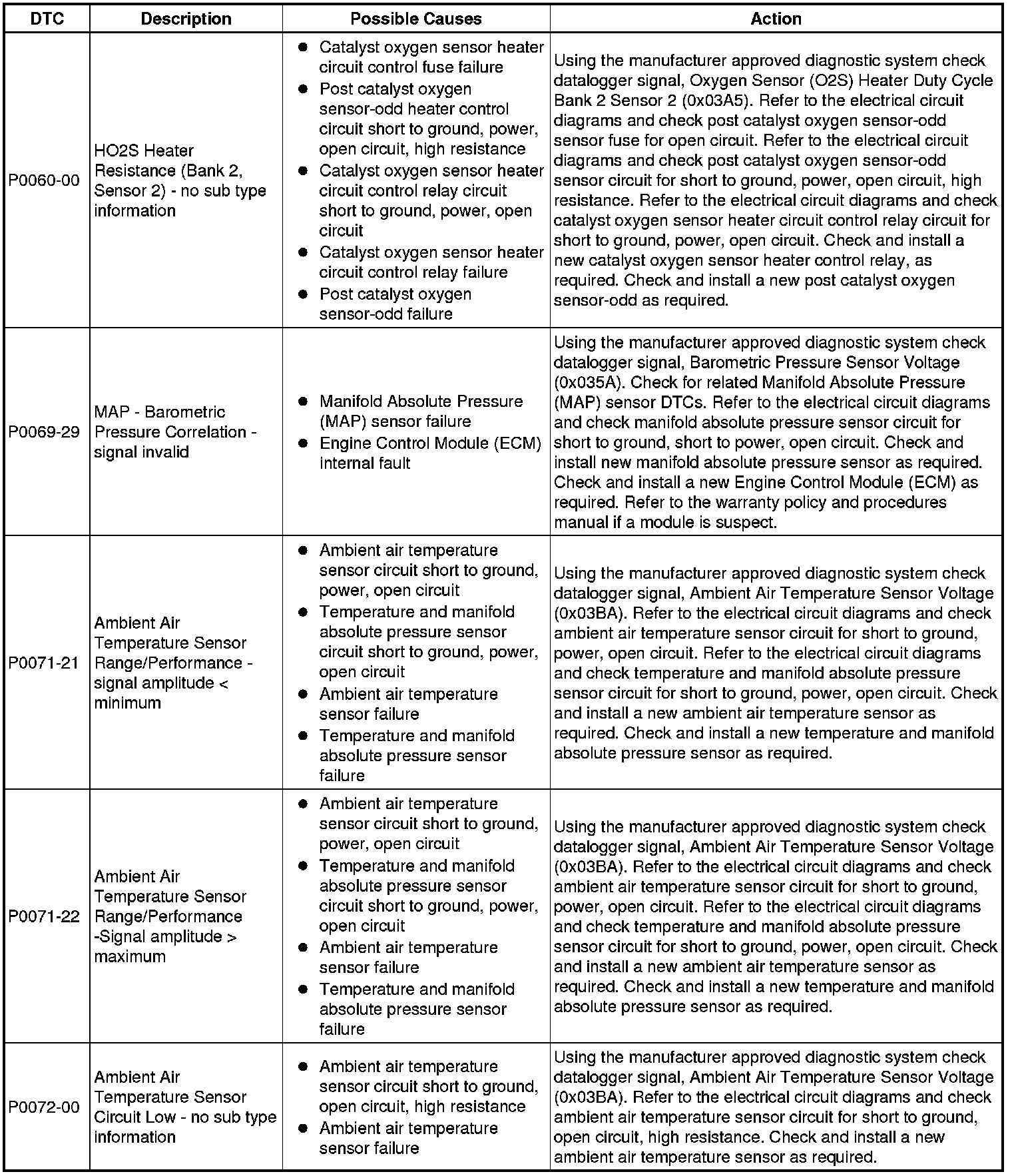 Generic scan tools may not read the codes listed, or may read only five digit codes. Match the five digits from the scan tool to the first five digits of the seven digit code listed to identify the fault (the last two digits give additional information read by the manufacturer-approved diagnostic system).