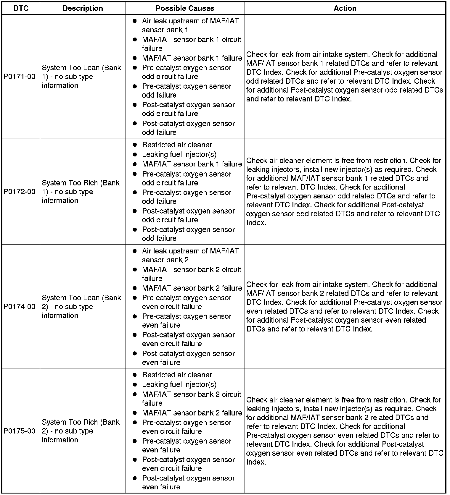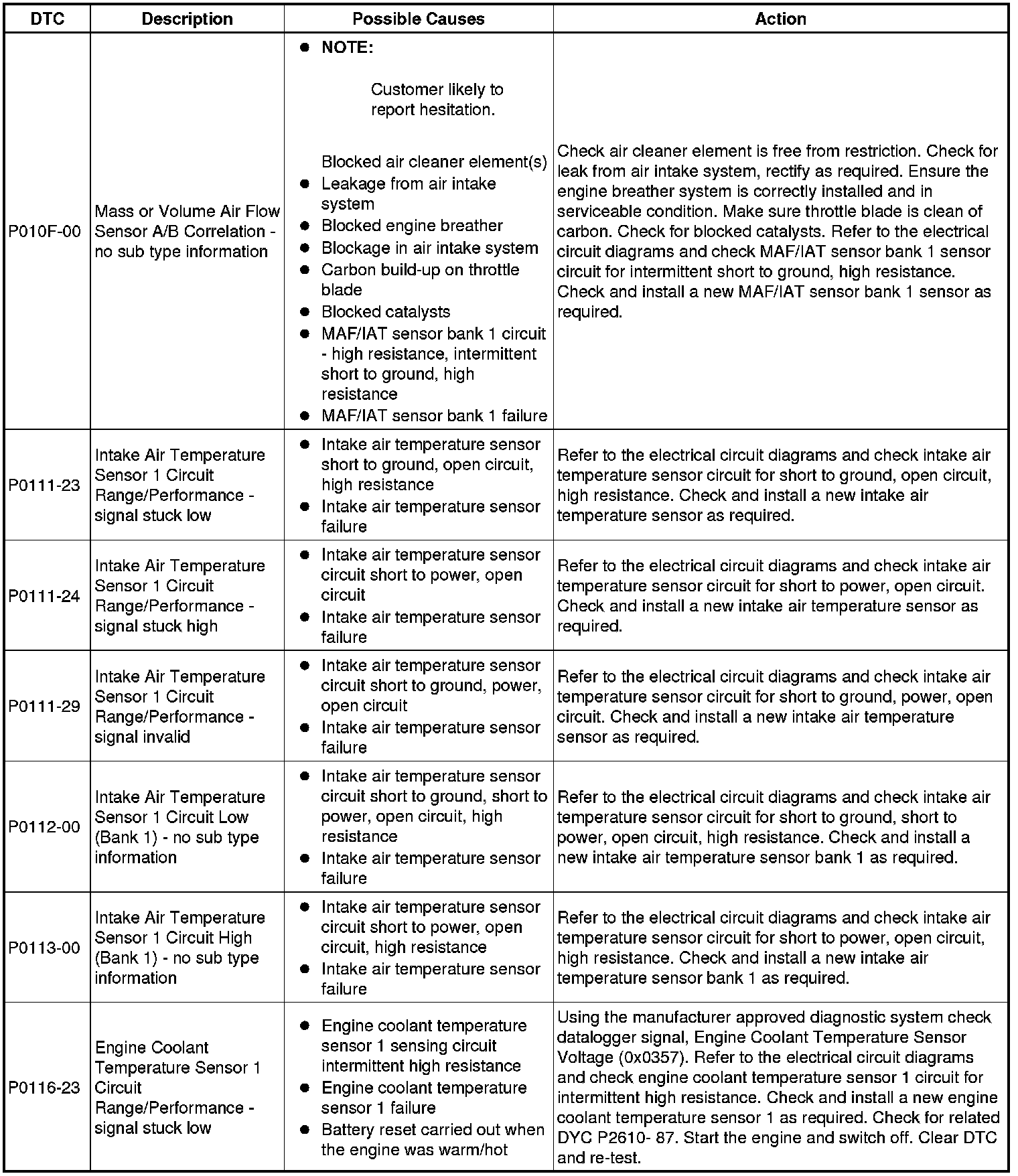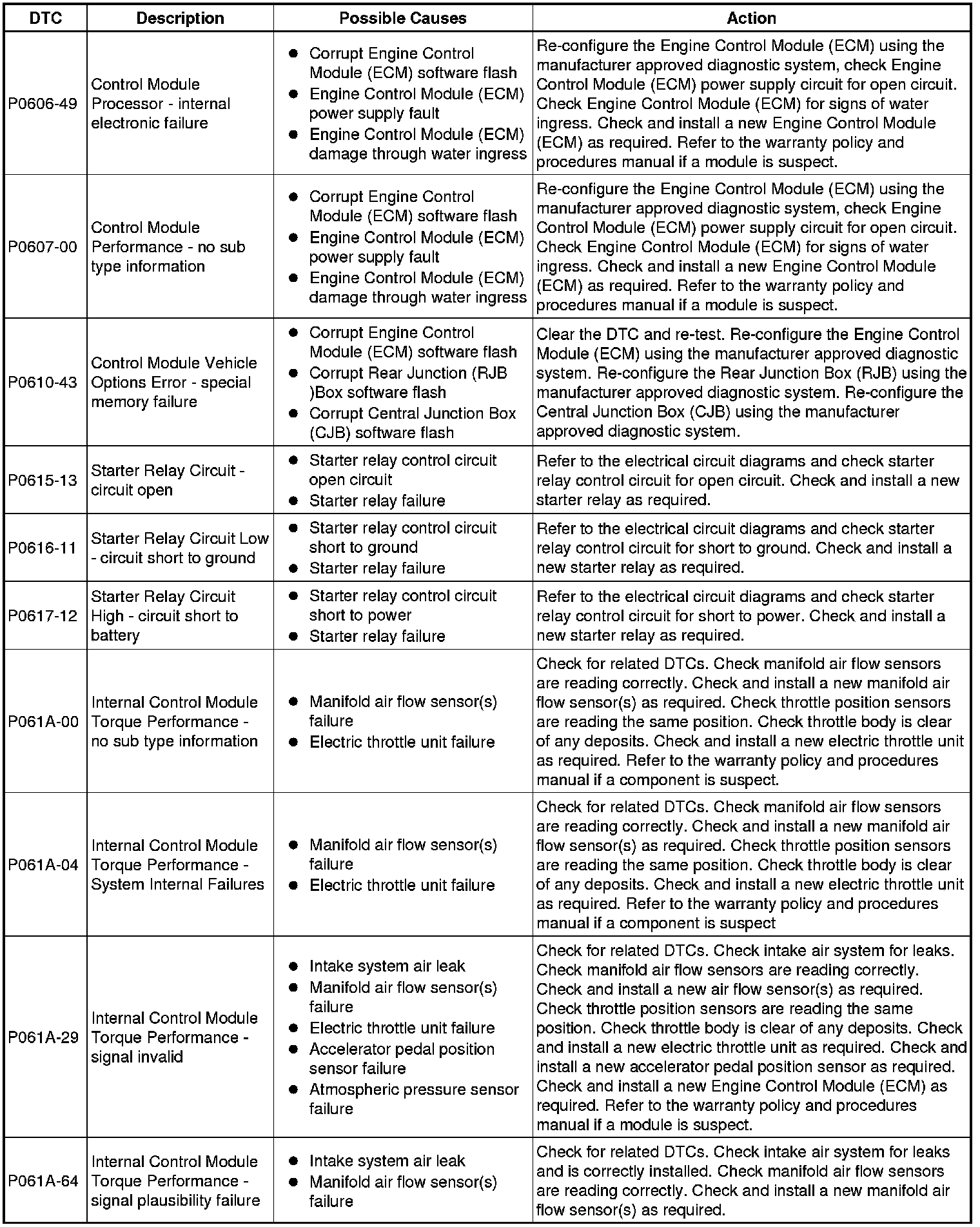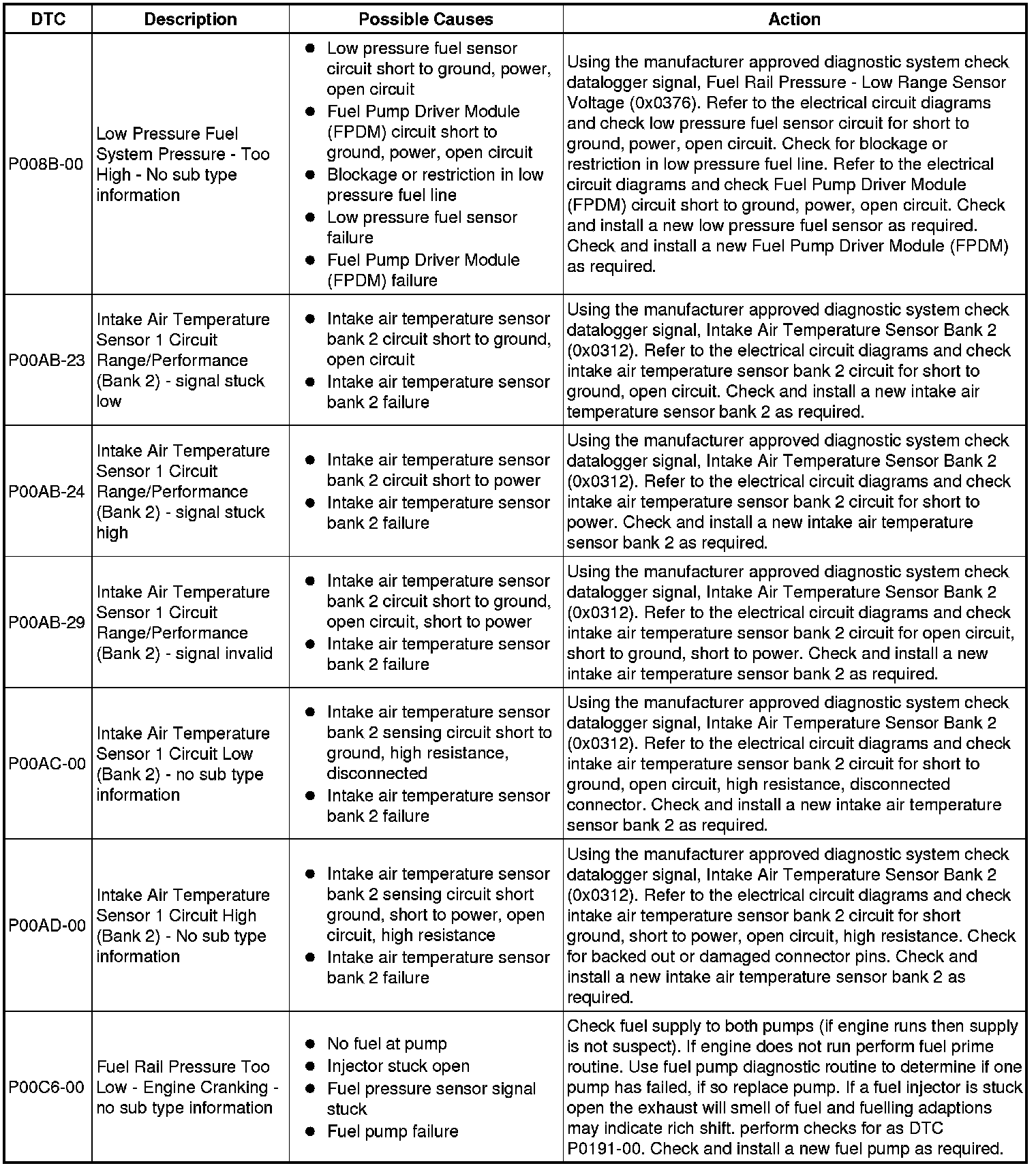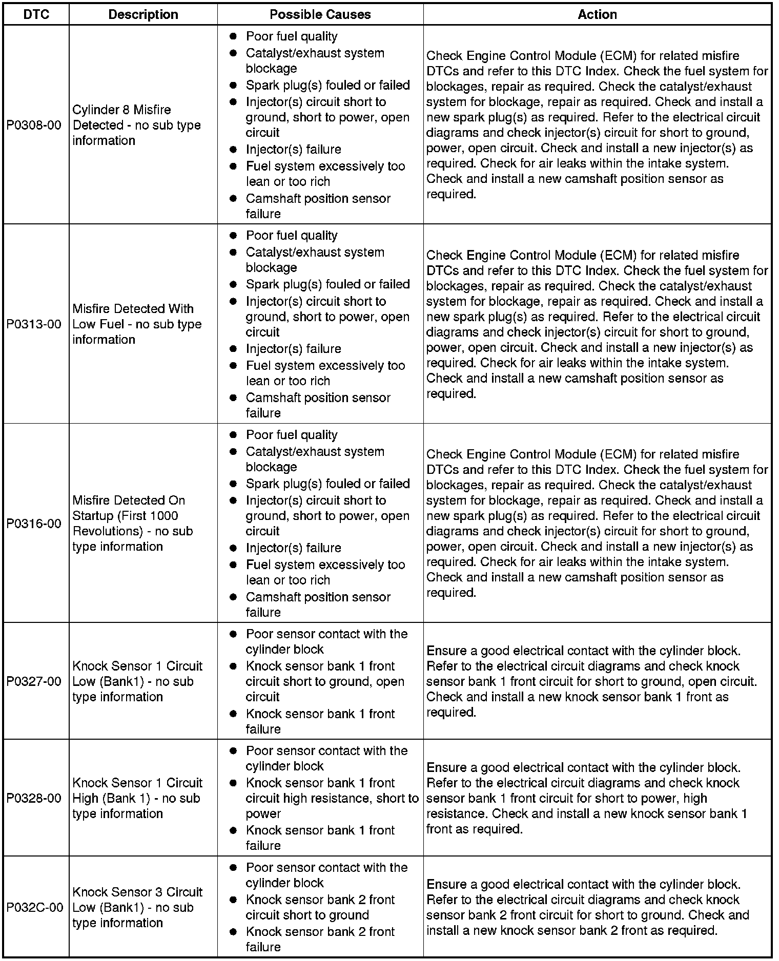 Generic scan tools may not read the codes listed, or may read only five digit codes. Match the five digits from the scan tool to the first five digits of the seven digit code listed to identify the fault (the last two digits give additional information read by the manufacturer-approved diagnostic system).