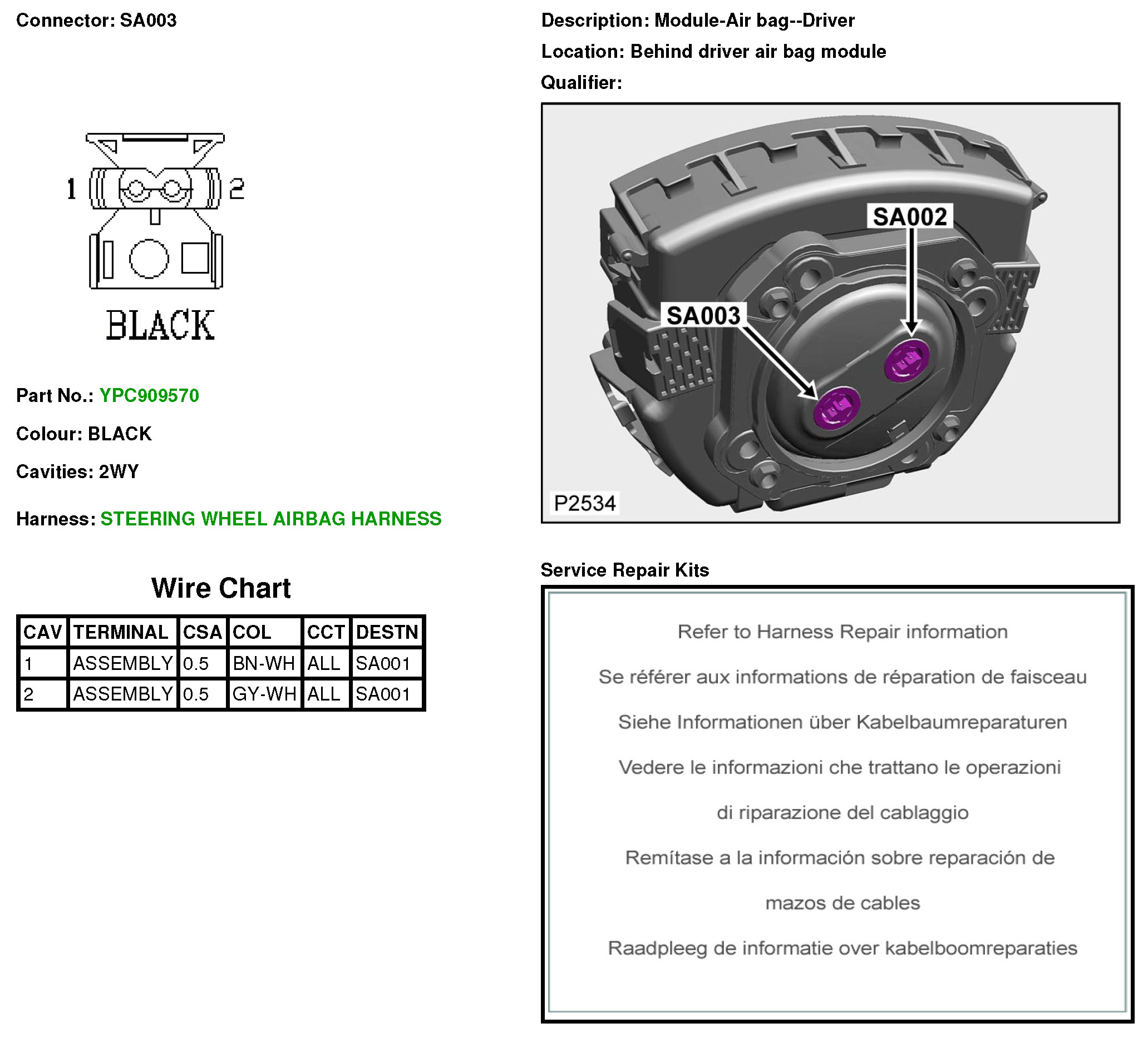 SA003 Module-Air Bag-Driver
