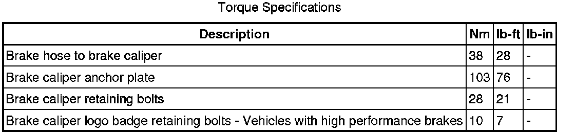 Rear Disc Brake Specifications