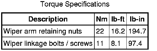 Wiper and Washer Systems: Specifications