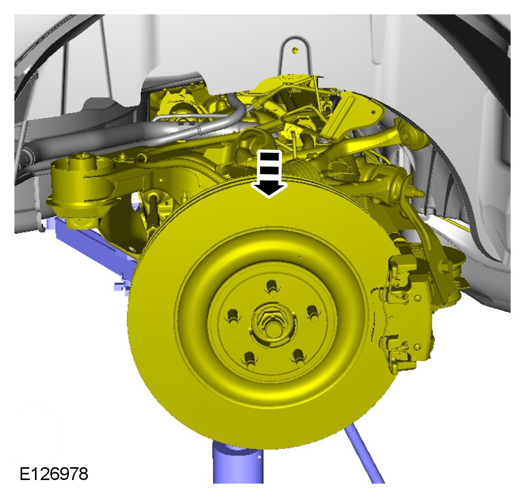 CAUTION: Make sure when lowering the rear subframe damage does not occur to the surrounding components. Failure to follow this instruction may result in damage to the vehicle.