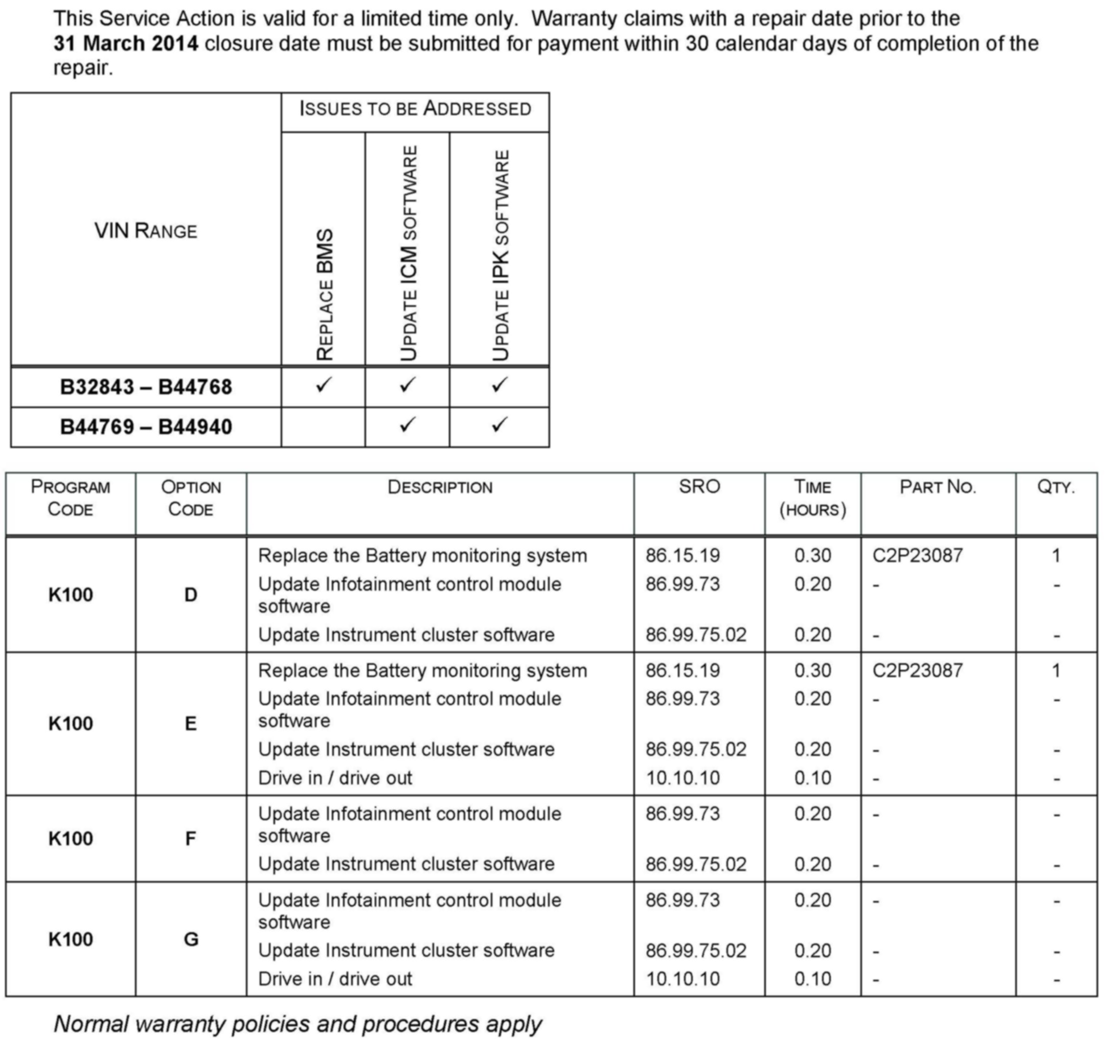 Service Action: Battery Monitoring System Replacement and Software Enhancement Program