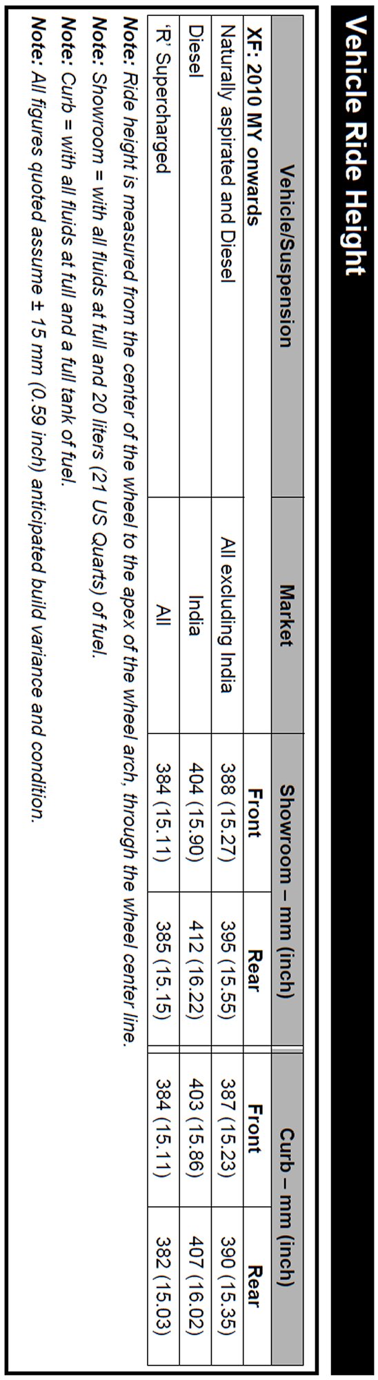 Ride Height Specifications