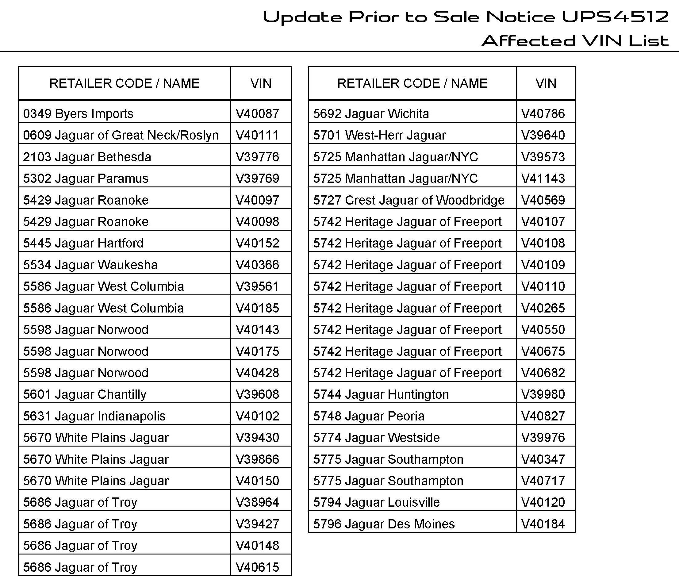 Retailers are required to HOLD all affected vehicles in the above VIN range that are in their control and refrain from releasing the vehicles for new or used vehicle sale pending completion of the rework action