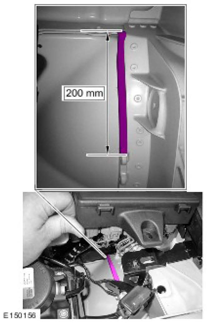 Make sure protective tape is applied to the area as shown; some vehicles may already have tape fitted but not in the correct area. Reposition the fuse box and apply a 200mm (8 in.) length of protective tape to the area shown.