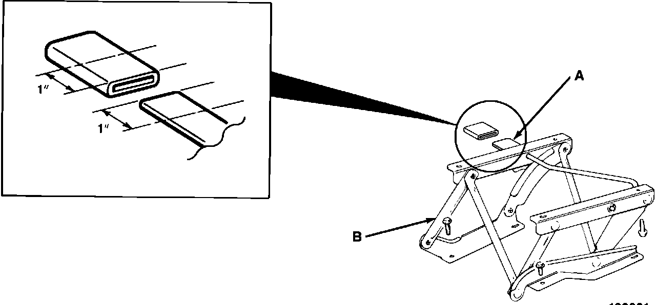 7. Draw a line one inch from the outer end of the seat latch lever as shown..
