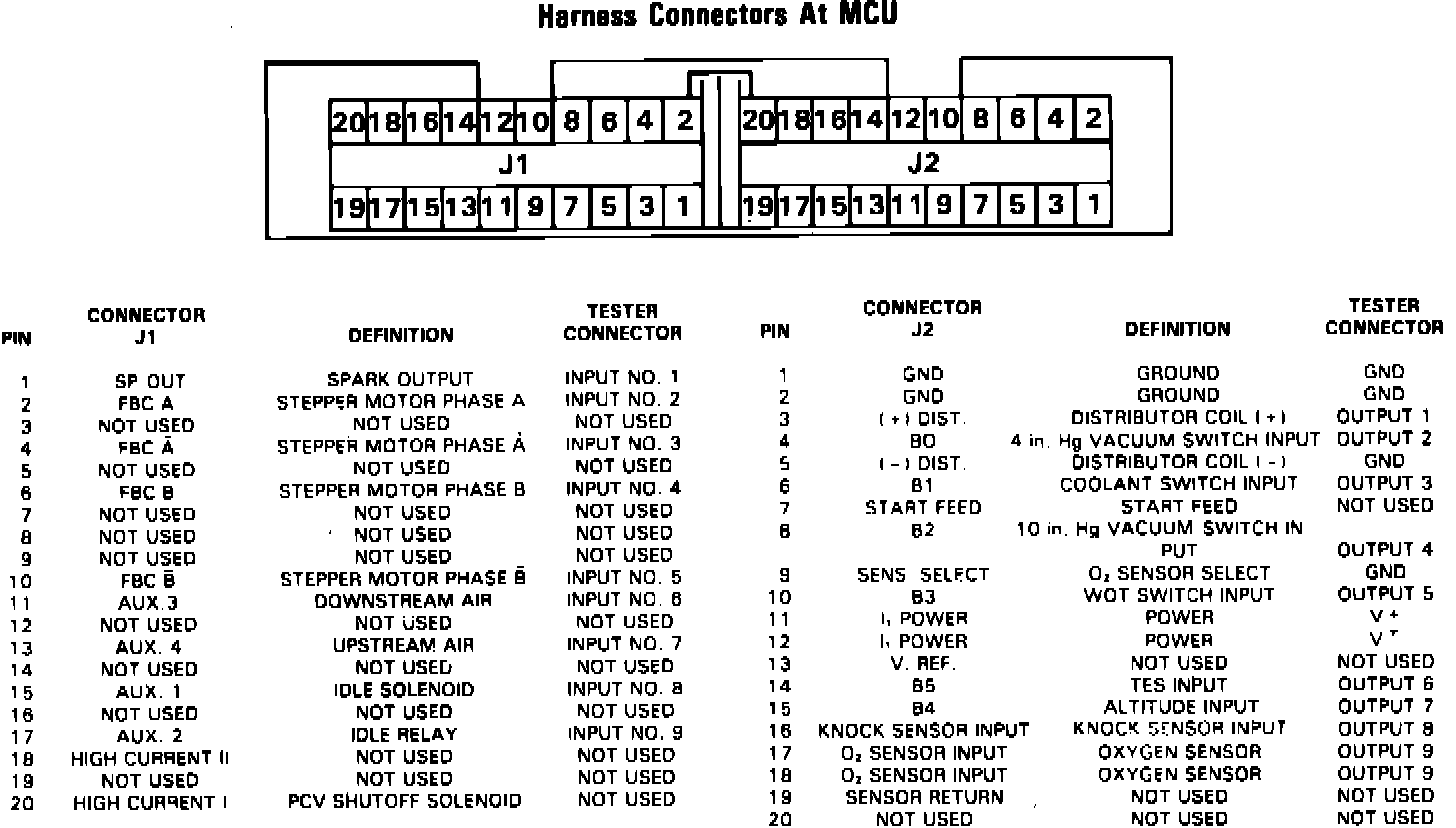 Fig. 11 MCU connector. 1983 6-258/4.2L: