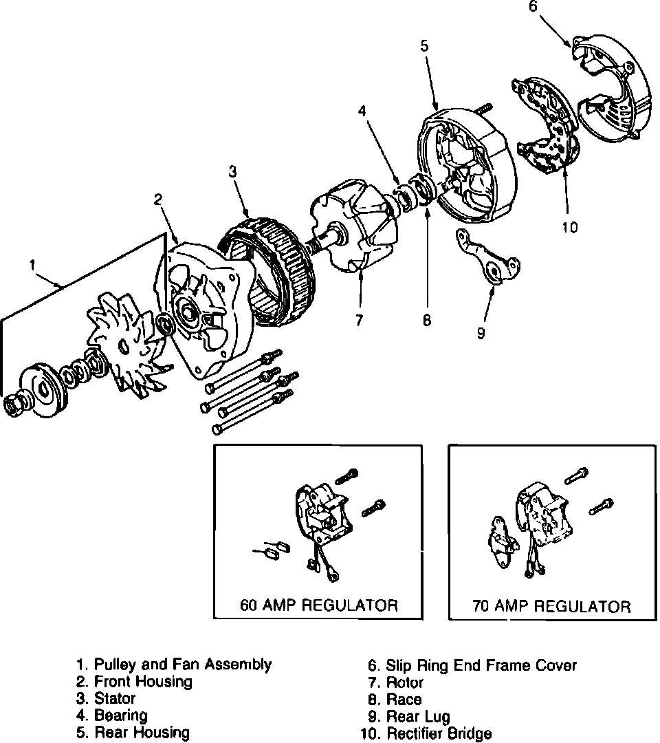 Fig. 1 Exploded view of alternator assembly: