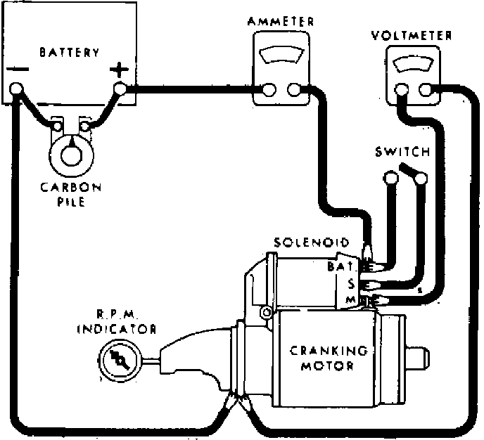 With the circuit connected as shown, use a tachometer to measure armature revolutions per minute. Failure of the motor to perform to specifications may be due to light or dry bearings, or high resistance connections.