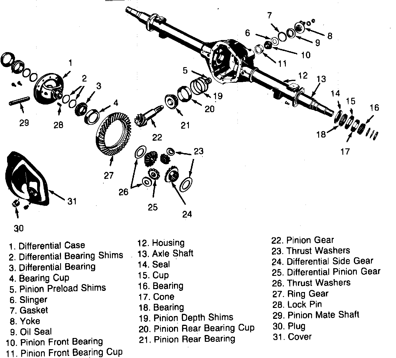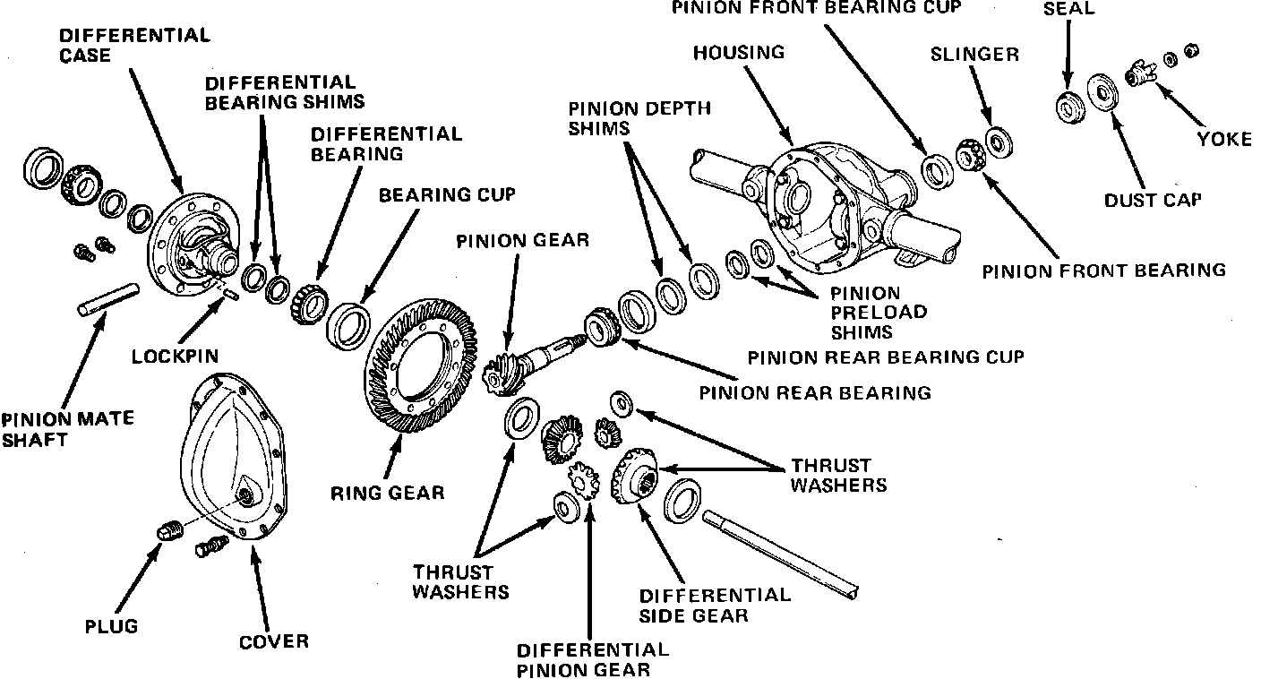 Fig. 1 Exploded view of model 60 rear axle: