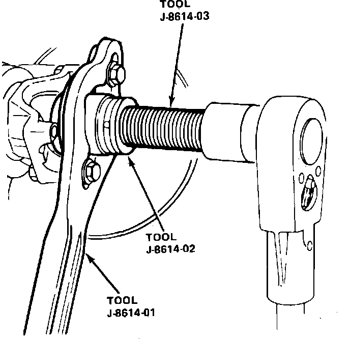 18. Using tools J-8614-01, -02 and -03, or equivalent, remove pinion yoke.