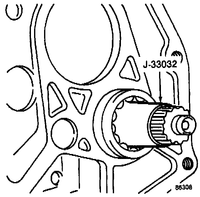 NOTE: When correctly installed with Tools J-33032 and J-29895, the countershaft rear bearing will extend 3 mm (0.125 in.) beyond the case surface.