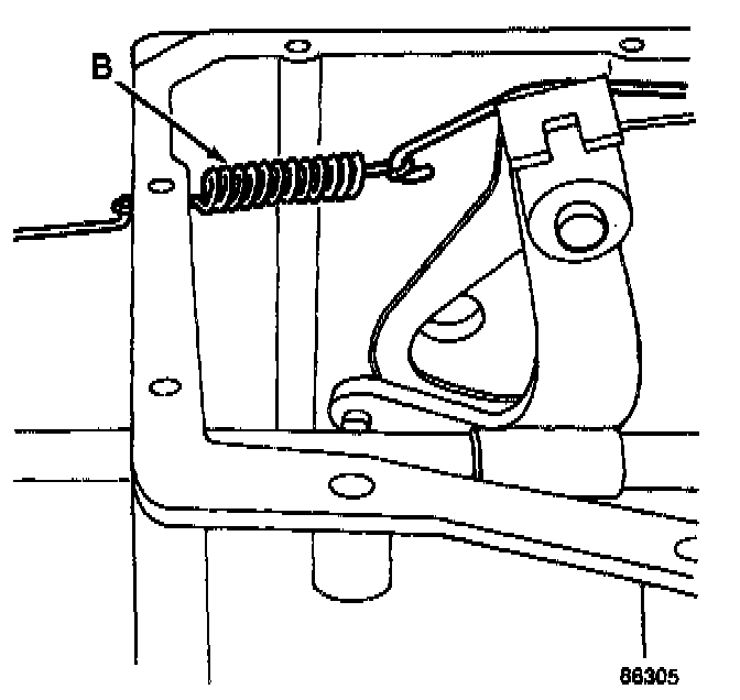 Install the fifth-reverse gear shift lever over-center link spring (B).