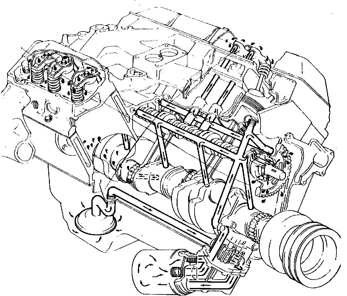 Engine lubrication system. V8 engine: