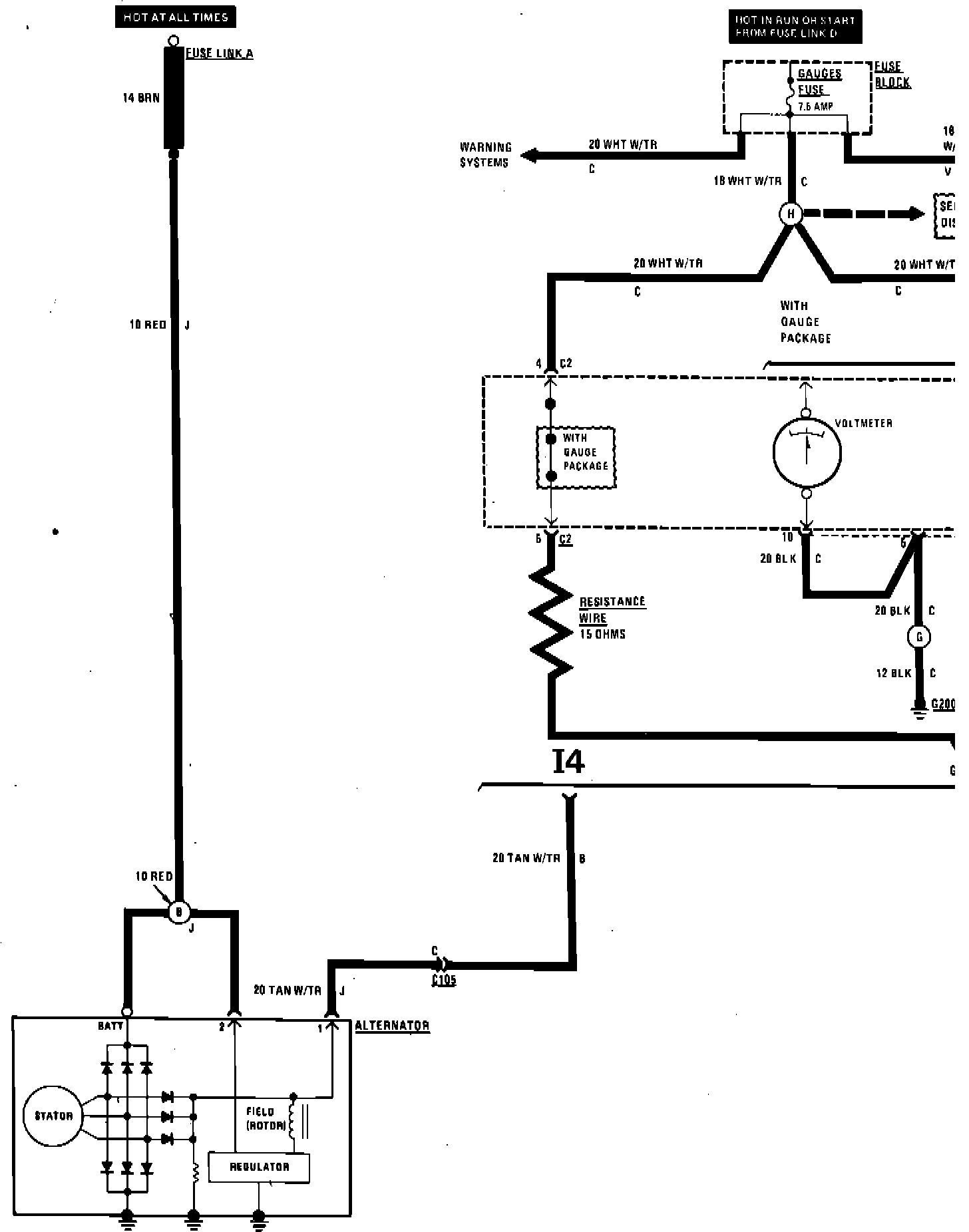 Fig. 14 Charging System Wiring Circuit (Part 1 of 2). W/Gasoline Engine: