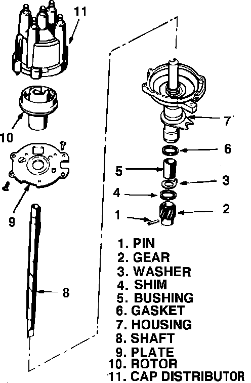 Fig. 5 Exploded view of distributor. 4-150 engines: