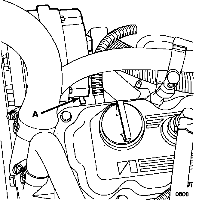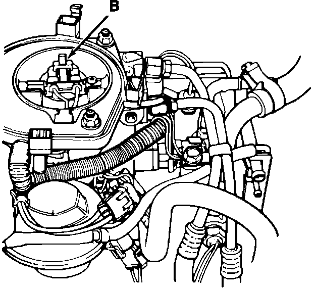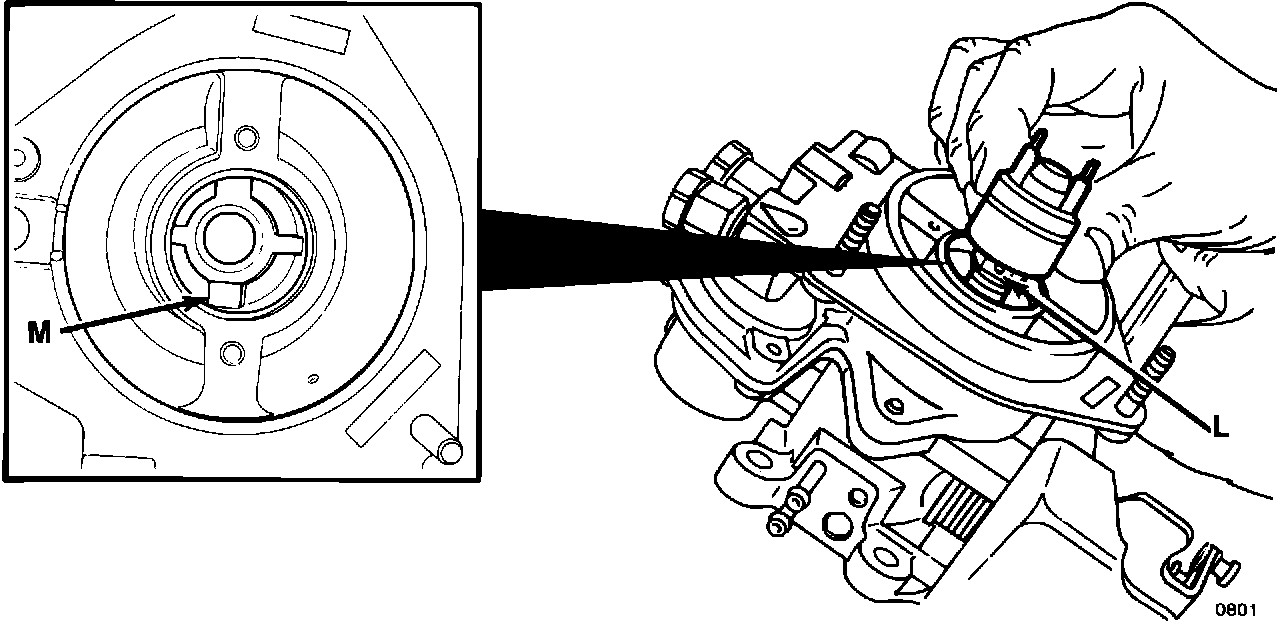 (L) engages slot in throttle body (M) so that injector harness connector (B) can be connected to the injector.