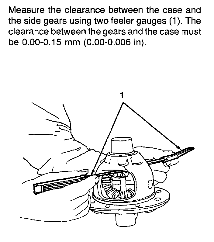 Move the ring gear backward and forward and note backlash registered on the dial Indicator. Backlash should be 0.13 to 0.23 mm (0.005 to 0.009 in), with 0.20 mm (0.008 in) desired.